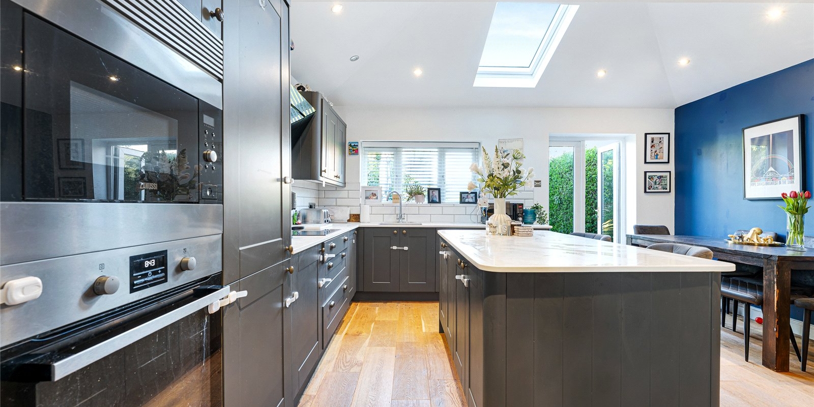 Upstairs, the property offers three well-proportioned bedrooms, each providing comfortable accommodation for families, guests or homeworking. A modern family bathroom completes the first floor, finished to a high standard and designed for everyday convenience.