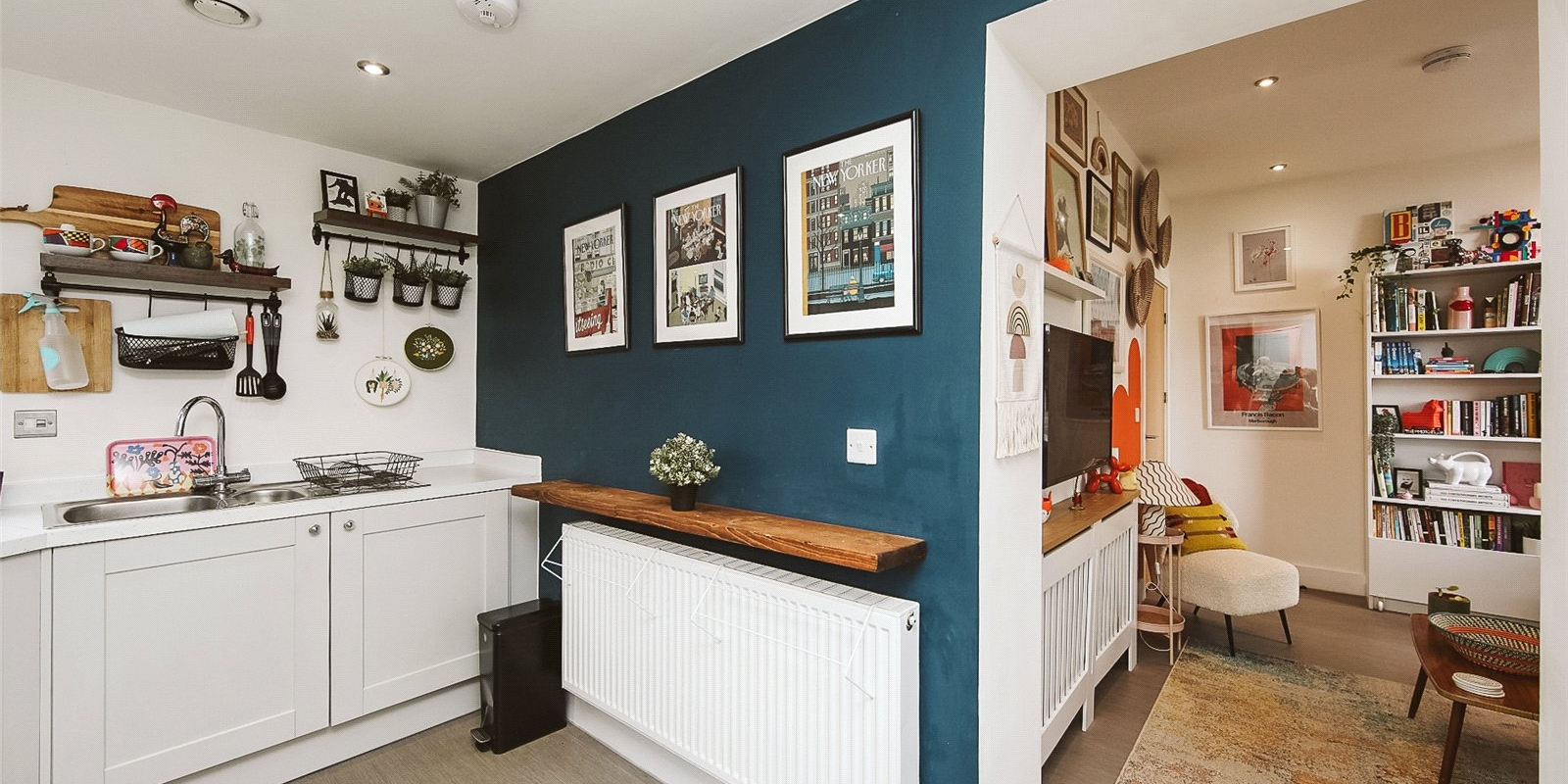 Generous, separate fitted kitchen – larger than typically found in similar flats, with ample storage and workspace. Integrated appliances included.