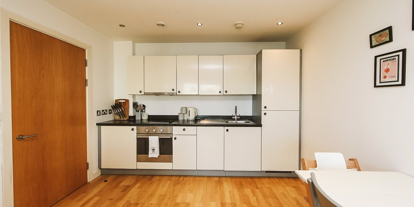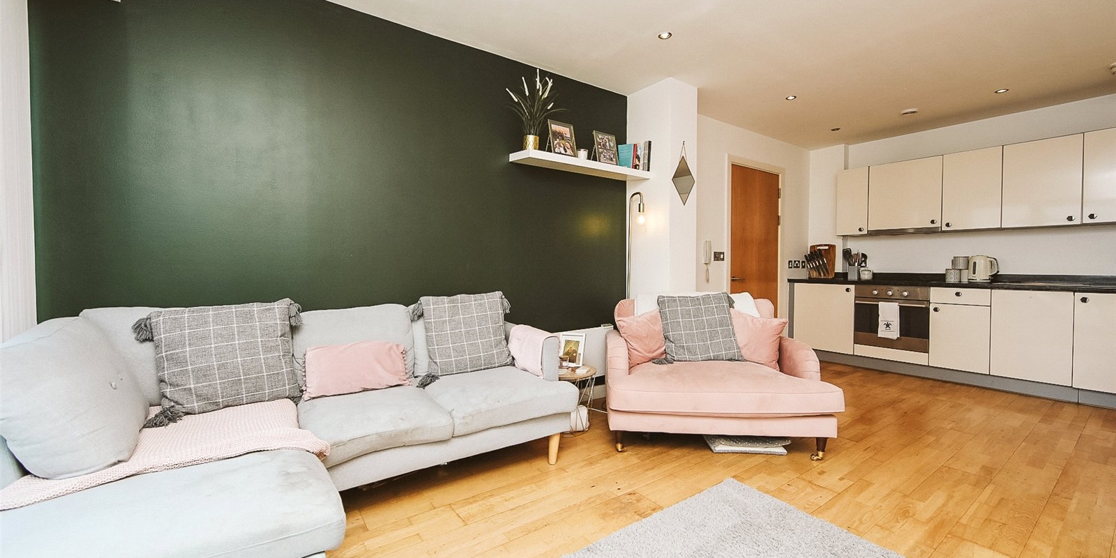 Open-plan kitchen diner with integrated appliances