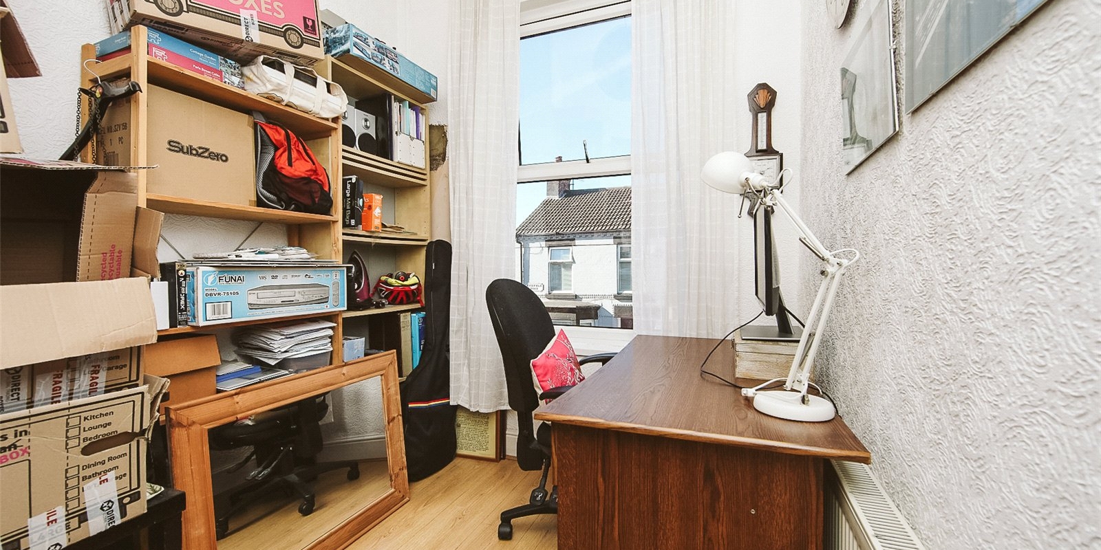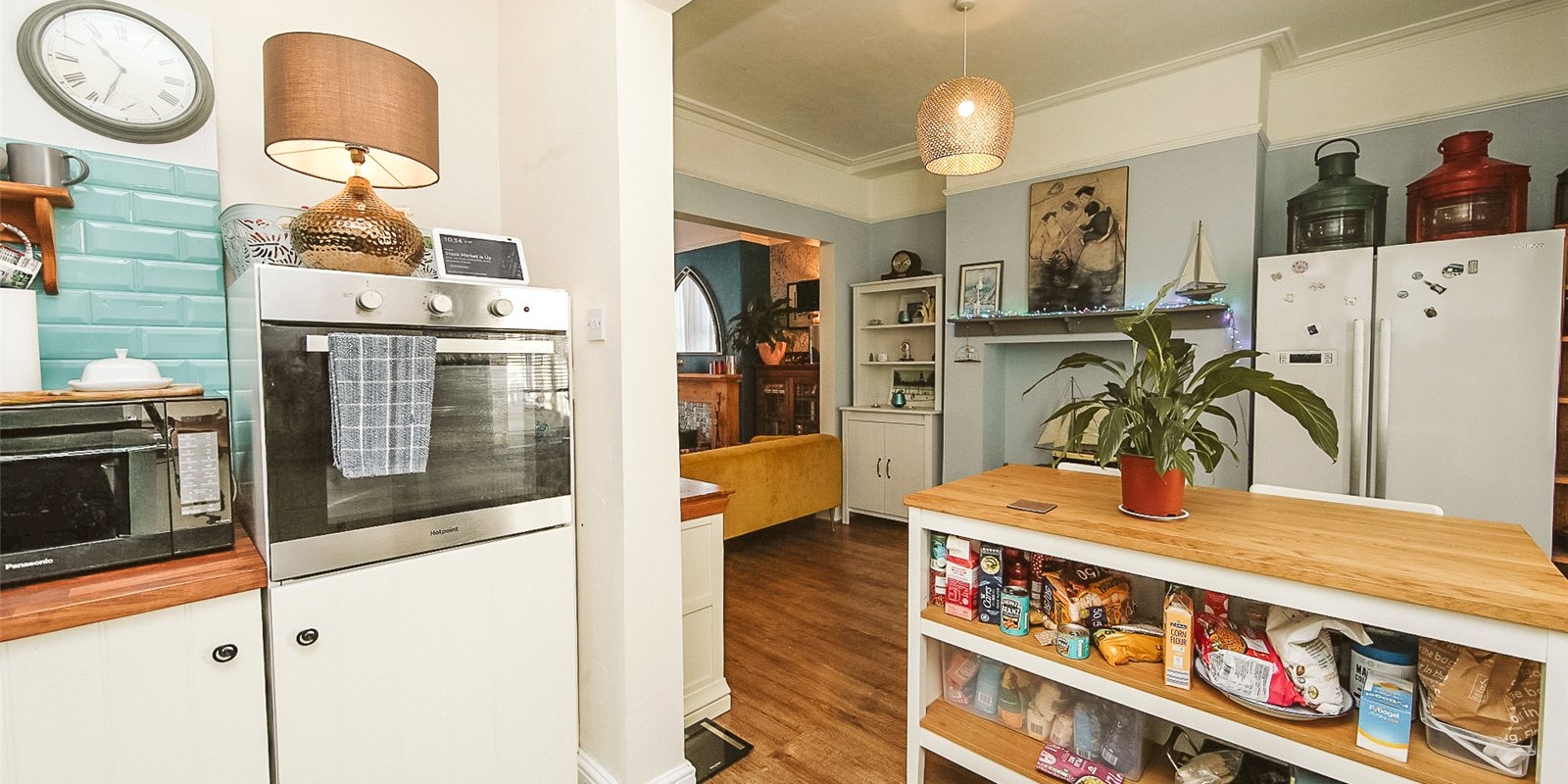 A connecting door from the dining room leads to a small utility area and separate downstairs WC which adds convenience for guests and busy family life. The back door leads from this area into a spacious back yard which includes a 2m x 1m wooden shed