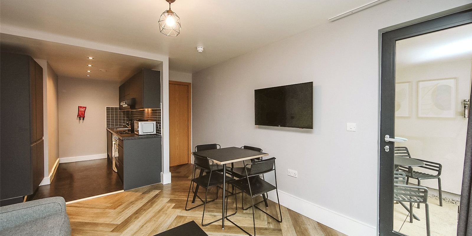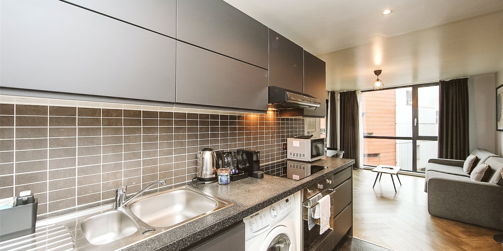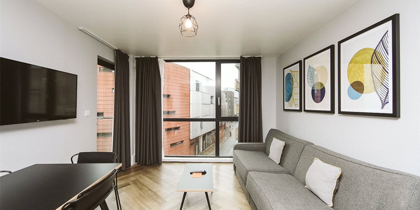Located in the heart of Liverpool City Centre, this stylish one-bedroom flat offers modern urban living just moments from Liverpool One and Central Station. Situated on the upper floor of a secure development, the property features a bright open-plan living space with floor-to-ceiling windows, a contemporary kitchen, and a partitioned bedroom area.