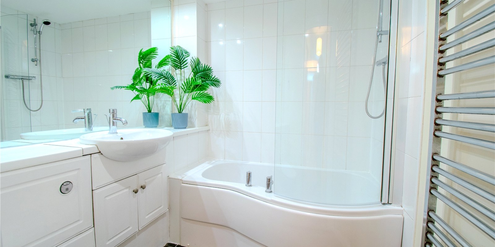 As you enter the bright hallway you find the two large double bedrooms on the right hand side, with ample space for double bed and additional storage. The smart bathroom suite is fitted with bath and shower. The living room is an impressive size, with the kitchen left open to allow for conversations to continue while you are cooking. There is space for living and dining together, or potential to add work-from-home space. The space is complemented by the patio doors leading out onto the terrace, which overlooks the central water feature and communal gardens of the development.