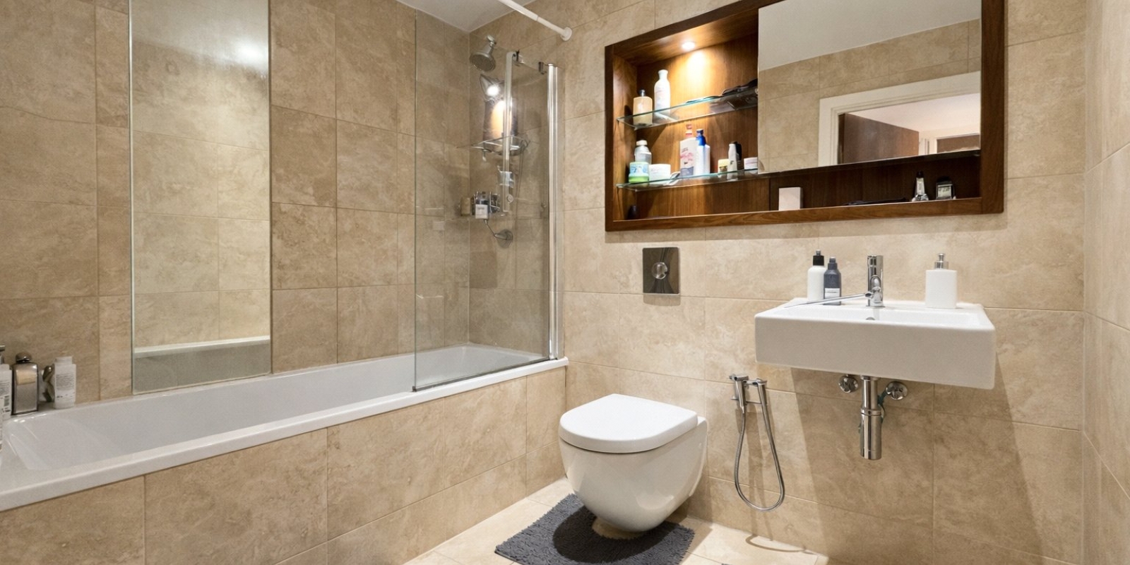 Both bedrooms are well-proportioned and thoughtfully designed to provide comfortable sleeping spaces with room for storage. A modern bathroom and additional hallway storage complete the internal layout, ensuring practicality matches the apartment’s aesthetic appeal.