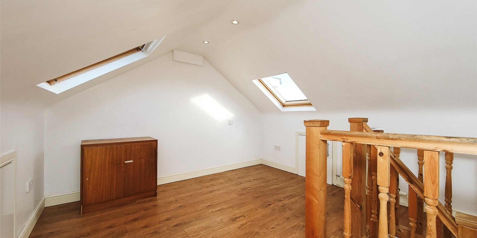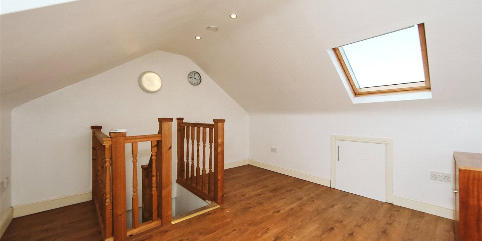 The ground floor features a welcoming hallway leading to a spacious lounge and a separate dining room. The kitchen provides a functional workspace and room for appliances, with scope to update to personal taste. Upstairs, two good-sized bedrooms are complemented by a split bathroom and WC. The converted attic room offers additional versatile space, perfect for a study, hobby room, or extra storage.
