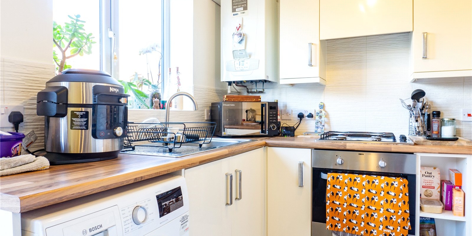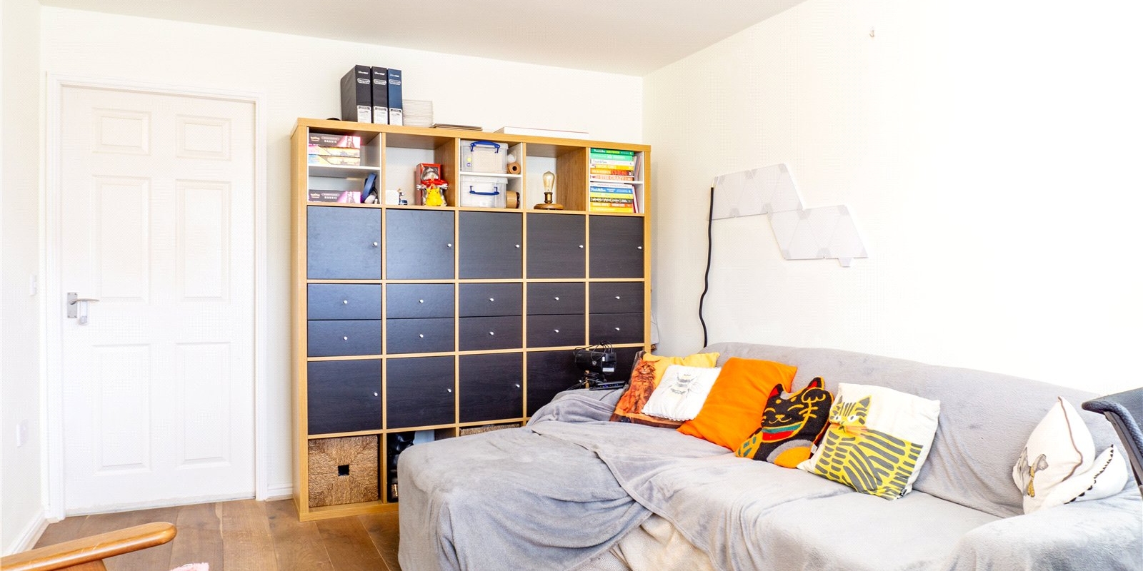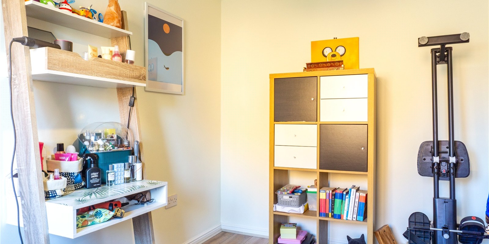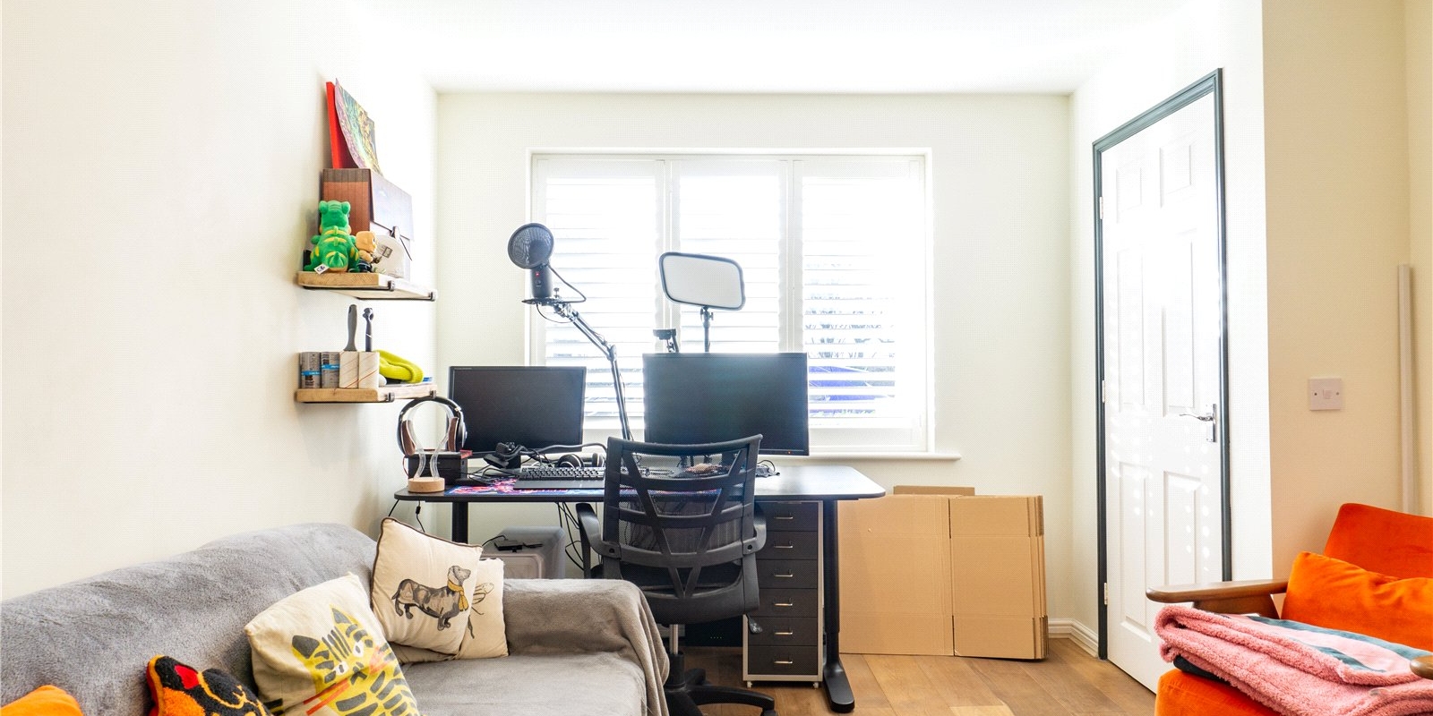 Upstairs the home benefits from two generous double bedrooms, with enough space for additional storage or ability to work from home. The bathroom has been redecorated and has a bath and shower, ideal for those with younger children. The wooden shutter-style blinds throughout add character and charm.