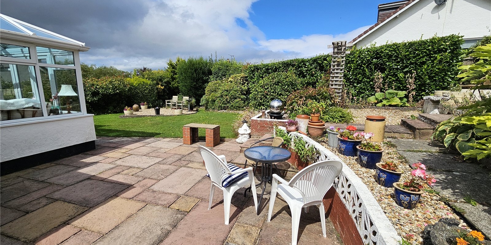 Outside is where the property shows itself even further. The property has a lawned front garden. At the rear of the bungalow is the true showpiece, with a large patio area overlooking the lower lawned area which is very private with well-established boarders.