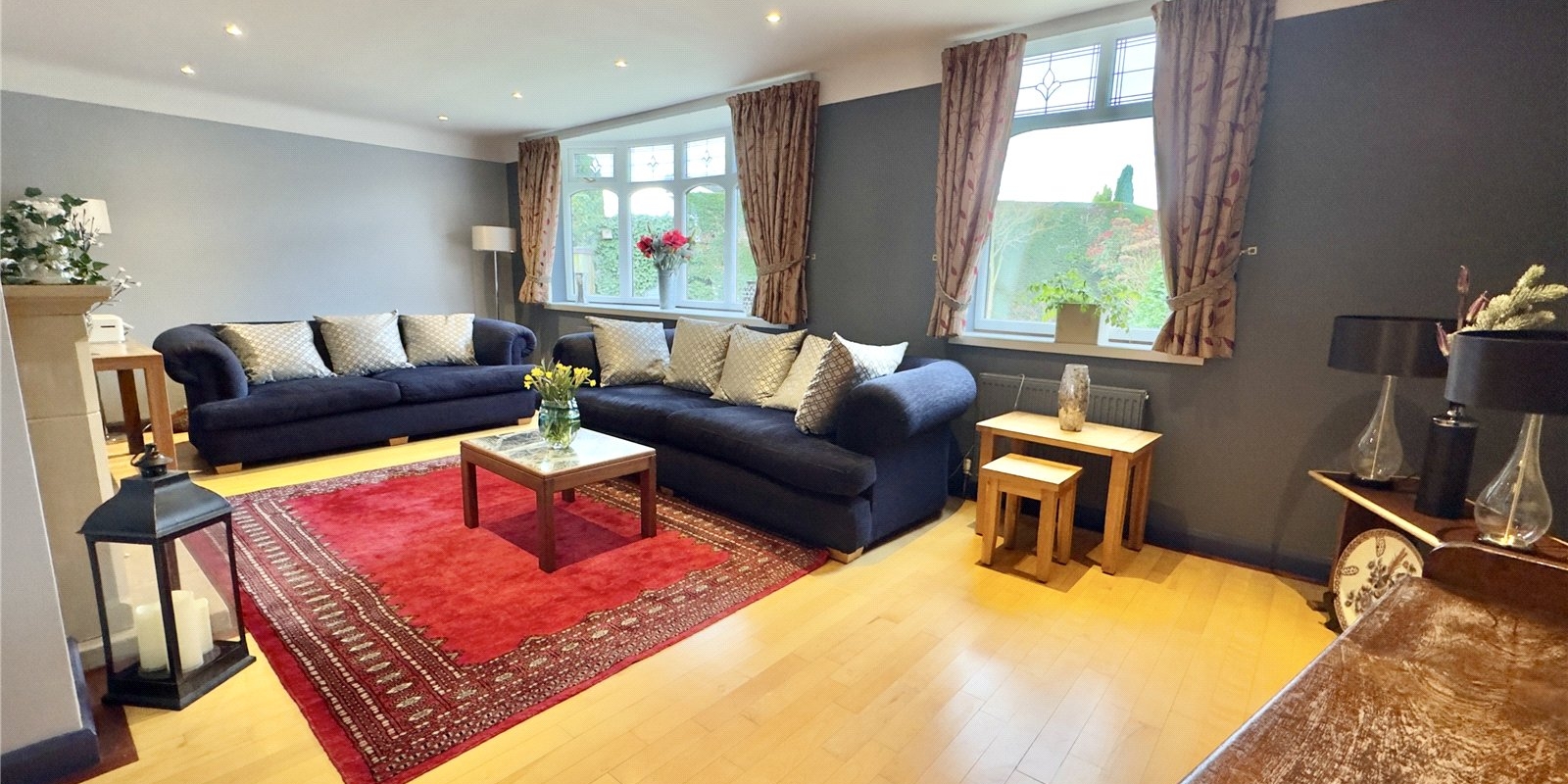 Externally, the property sits within stunning wrap-around gardens that have been thoughtfully landscaped and maintained. The outdoor space features a charming pond, well-stocked flower beds, a pavilion, and a well-built wooden cabin, creating a peaceful setting ideal for relaxing or entertaining.