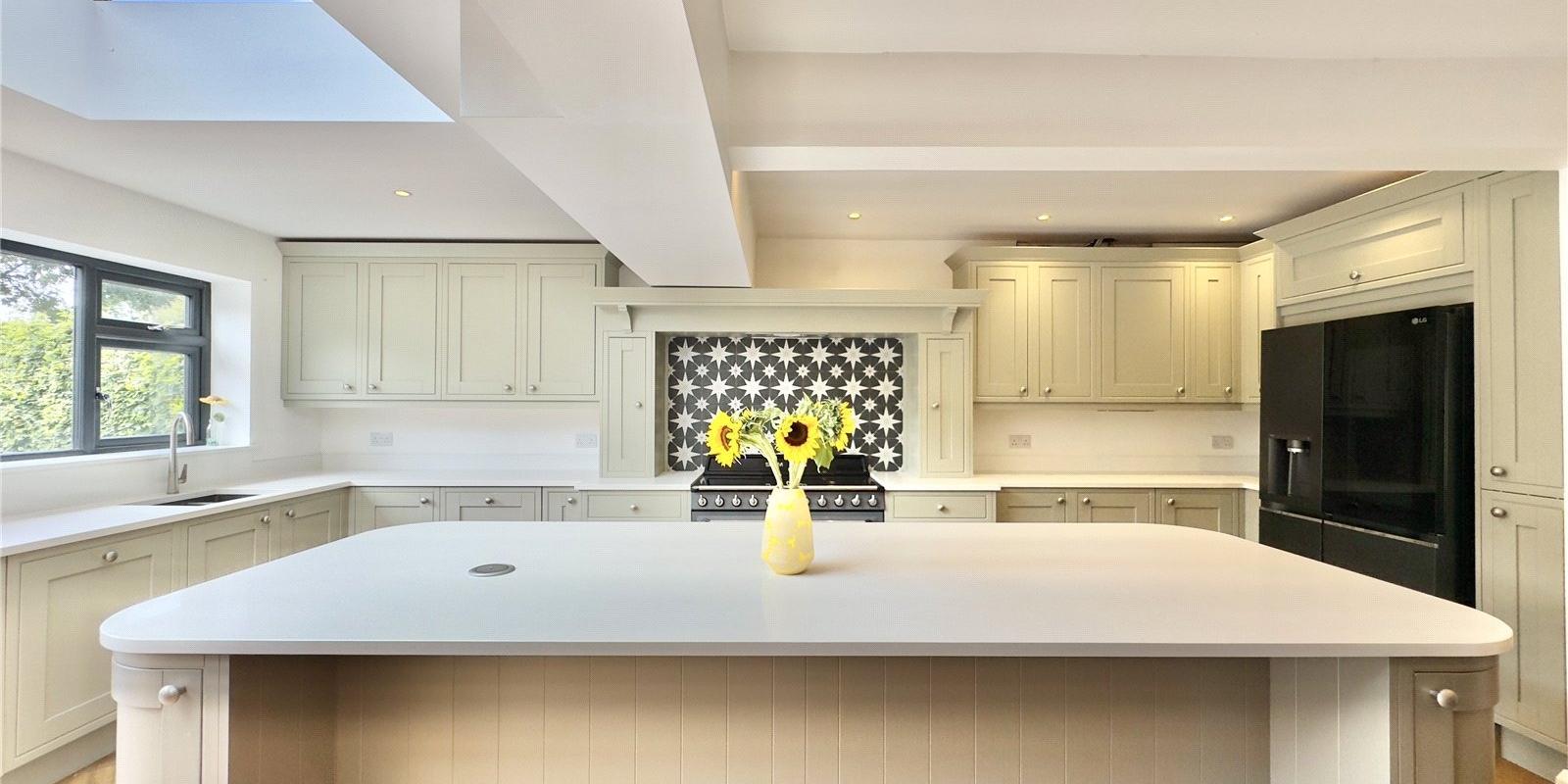 Upon entering the home, you are welcomed by a bright hallway that opens into a versatile study area to the left, perfect for home working or reading. To the front of the house is a stylish lounge featuring elegant shutter blinds, offering a cosy retreat. Further along the hallway, you’ll find a modern utility room and a convenient downstairs WC. The heart of the home lies in the expansive open-plan living, dining, and kitchen space to the rear. This stunning area boasts a sleek, modern kitchen with an abundance of base and wall units, integrated appliances, and a large central island. The space is flooded with natural light and opens out to the rear garden through impressive bifold doors, making it ideal for everyday living and entertaining.