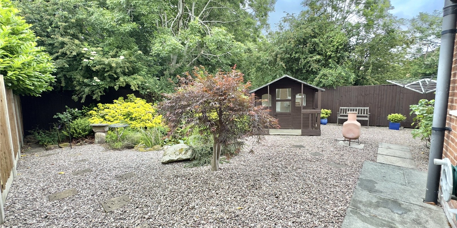 Both the front and rear gardens are designed for low maintenance, allowing you to enjoy outdoor living without the upkeep. At the rear, the garden backs directly onto woodland, offering peaceful views and immediate access to nature—perfect for dog walks or weekend strolls.