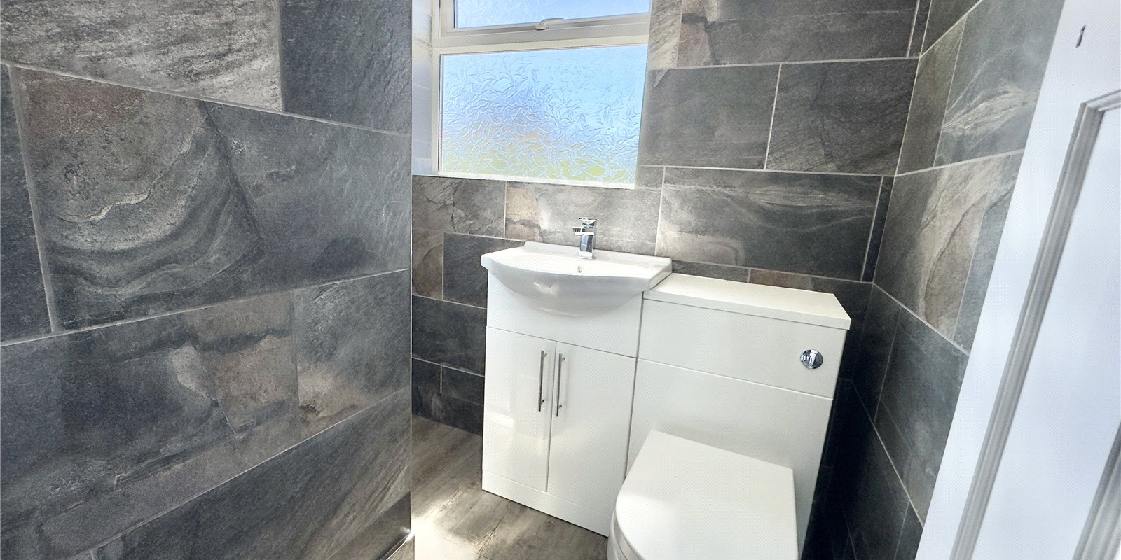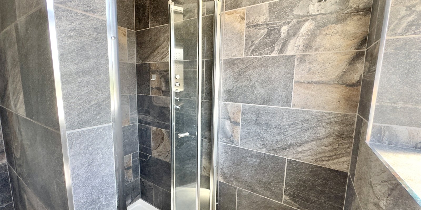 The ground floor accommodation includes a bright and spacious lounge, a bespoke fitted kitchen, and a separate utility room with plumbing for a washing machine. Just off the kitchen, you’ll also find a large walk-in storage cupboard or pantry, offering excellent additional space. Upstairs, the property features two well-proportioned double bedrooms, a single bedroom, and a contemporary shower room.
