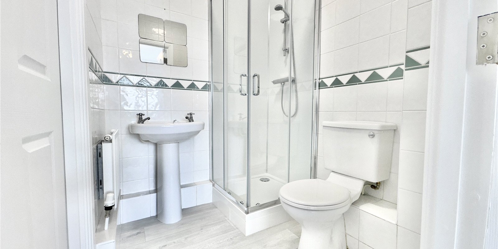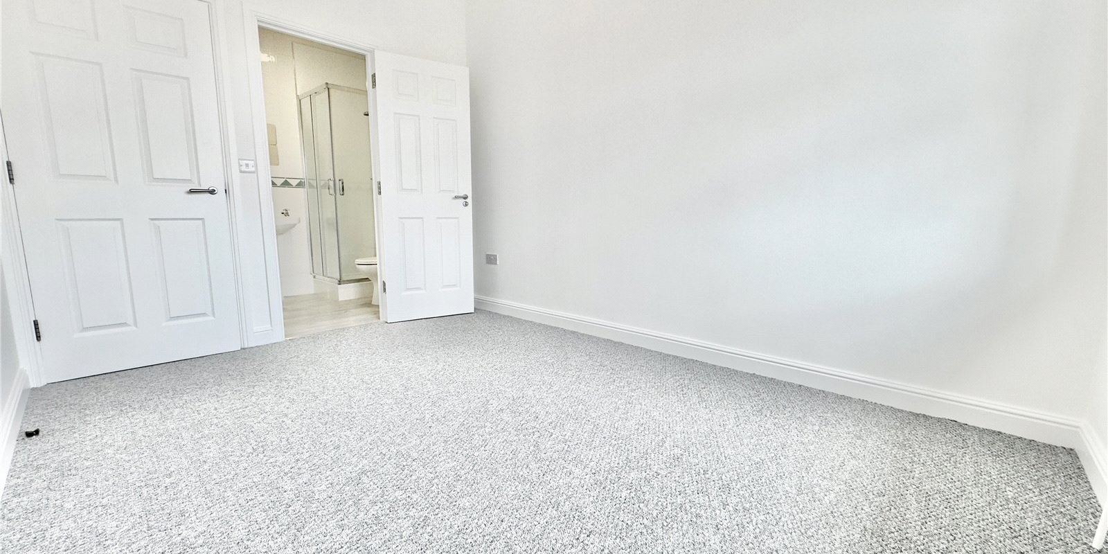 Inside, you’ll find a bright lounge with a Juliet balcony that opens into the modern kitchen, ideal for both relaxing and entertaining. The entrance hallway offers a useful storage cupboard, and leads to two generous double bedrooms. The main bedroom benefits from an en-suite bathroom, while the second bedroom has its own en-suite shower room, which is also accessible from the hallway — making it perfect for guests.