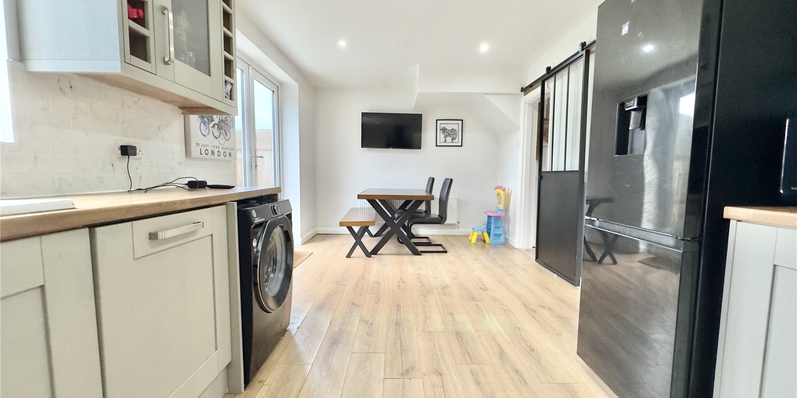 Upon entering, you are welcomed by a hallway that leads into a generously sized lounge at the front of the property, filled with natural light. To the rear, a contemporary kitchen-diner provides the perfect space for entertaining or family meals, with direct access to the rear garden.