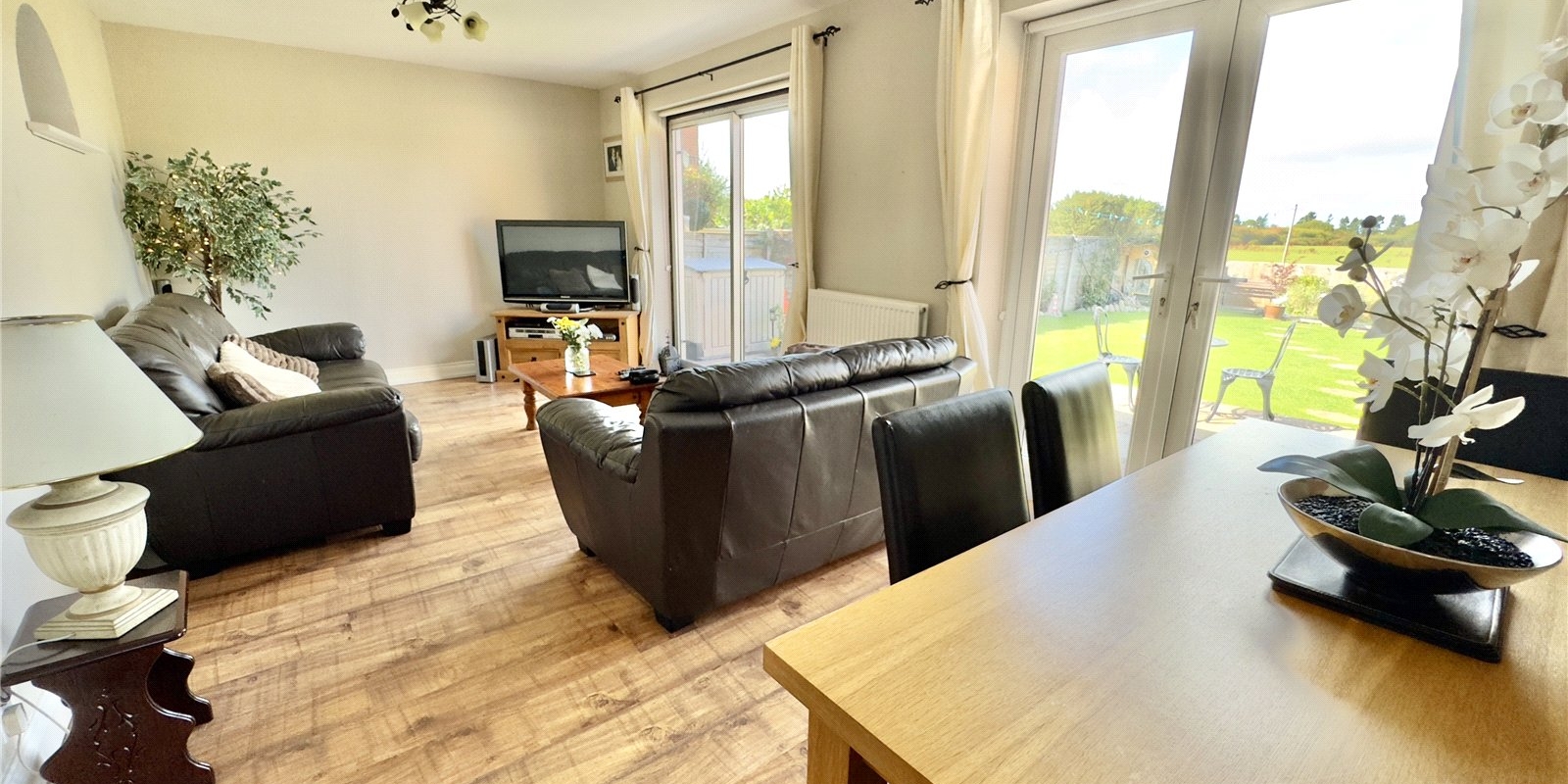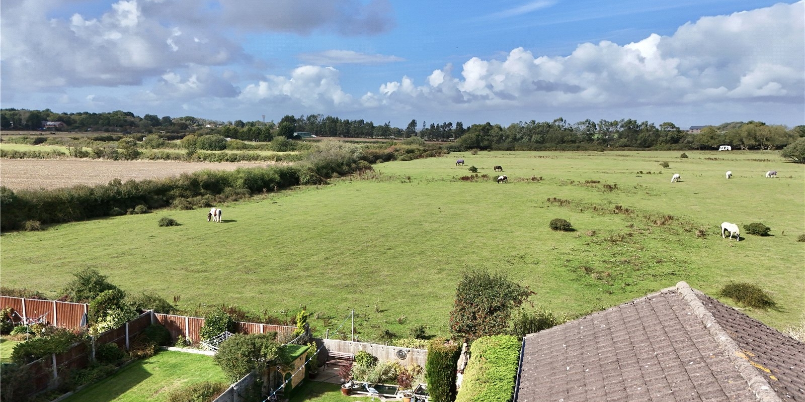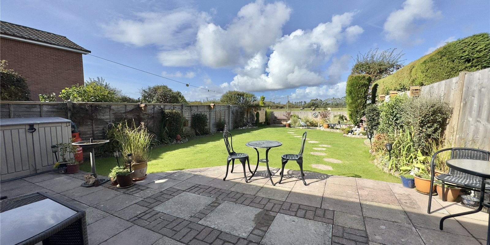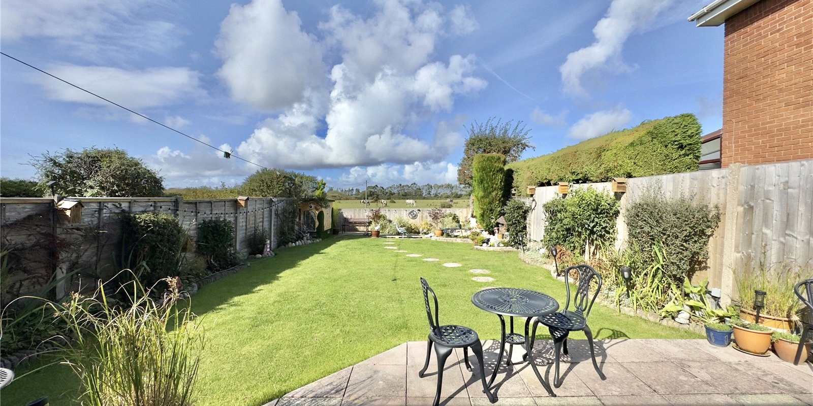 Outside, the garden is a real highlight – private, sun-drenched, and backing directly onto open fields, offering a peaceful and scenic outlook. To the front, there’s off-road parking for multiple vehicles.