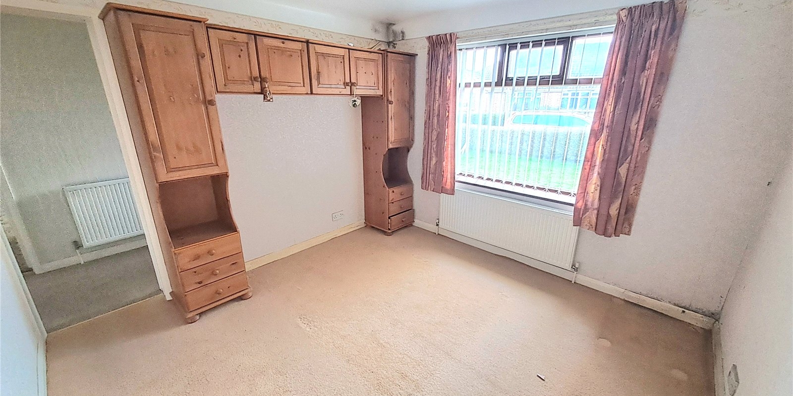 Offered for sale with no onward chain, the accommodation includes a spacious hallway, a good-sized lounge, and a kitchen diner with plenty of potential. There are two double bedrooms, both featuring fitted wardrobes, and one also benefits from a private WC. A separate bathroom completes the internal layout.