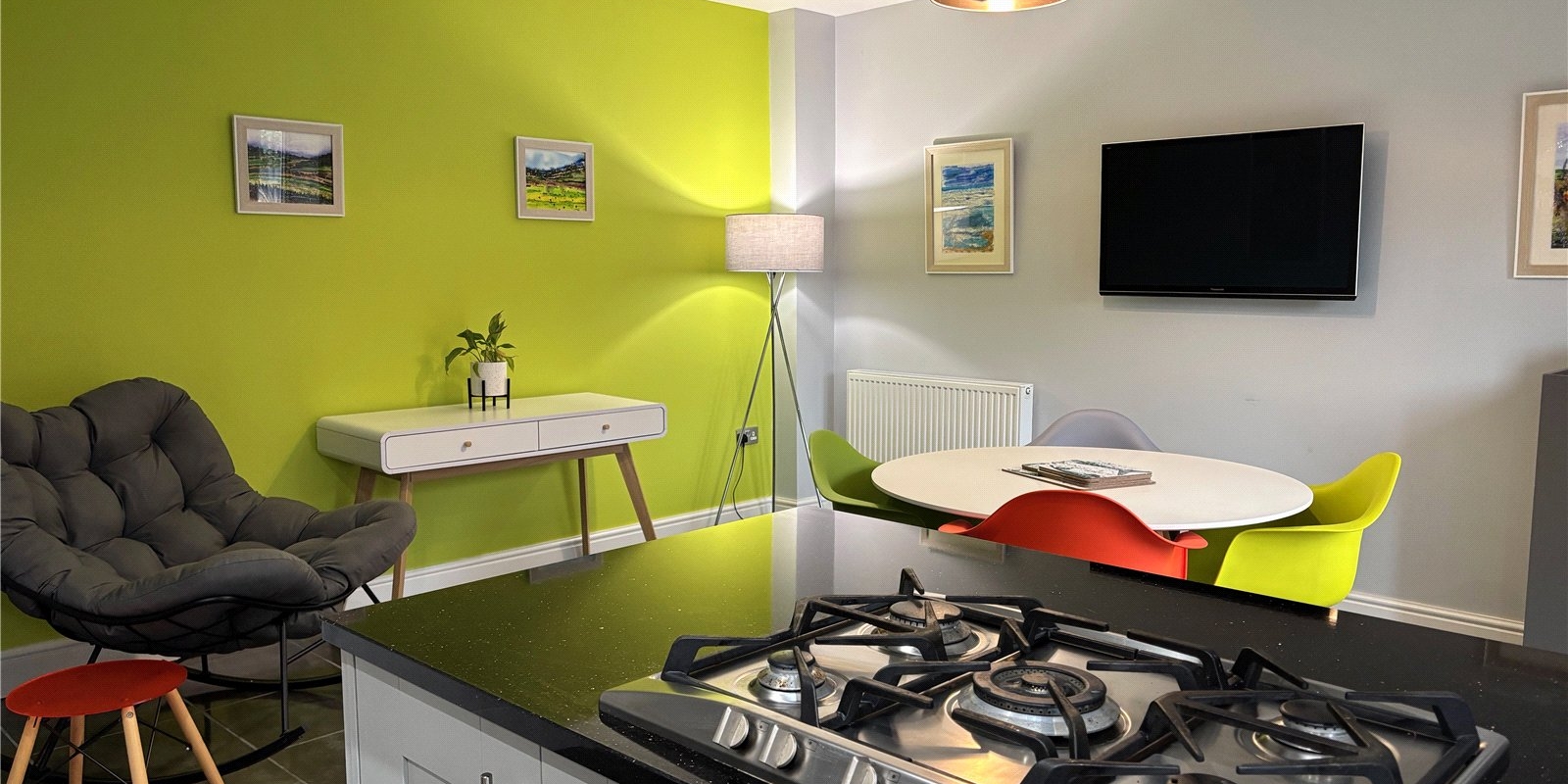 The accommodation begins with a welcoming entrance hall, leading to a generously sized lounge featuring a bay window and attractive fireplace. The heart of the home is the expansive open-plan kitchen and dining room, designed for modern family living and entertaining. Double doors seamlessly connect the interior to the rear decking, while granite worktops and a range of integrated Smeg appliances, including a double oven, microwave, hob and dishwasher, complete the space. Off the kitchen is a practical utility room, and a cloakroom is conveniently located off the main entrance hall.