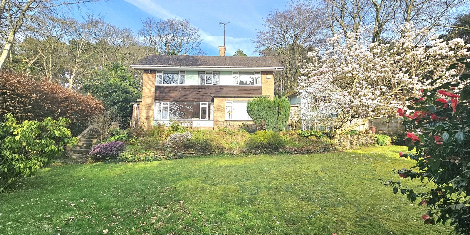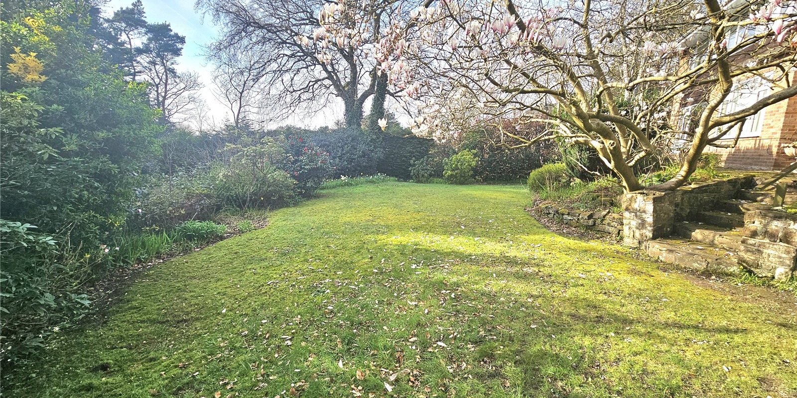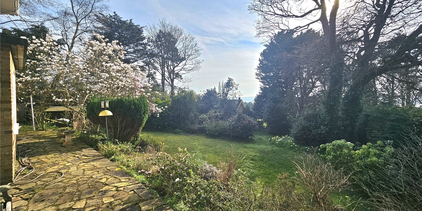 Externally, the property continues to impress. To the front, a gated driveway leads to a double garage, with mature trees and established shrubs creating a sense of privacy and seclusion from the main road. The rear garden is a particular highlight, offering a large and beautifully maintained outdoor space. A patio area provides the perfect spot for outdoor dining or relaxing while taking in the elevated views, while the expansive lawn is bordered by mature planting, adding both character and privacy.