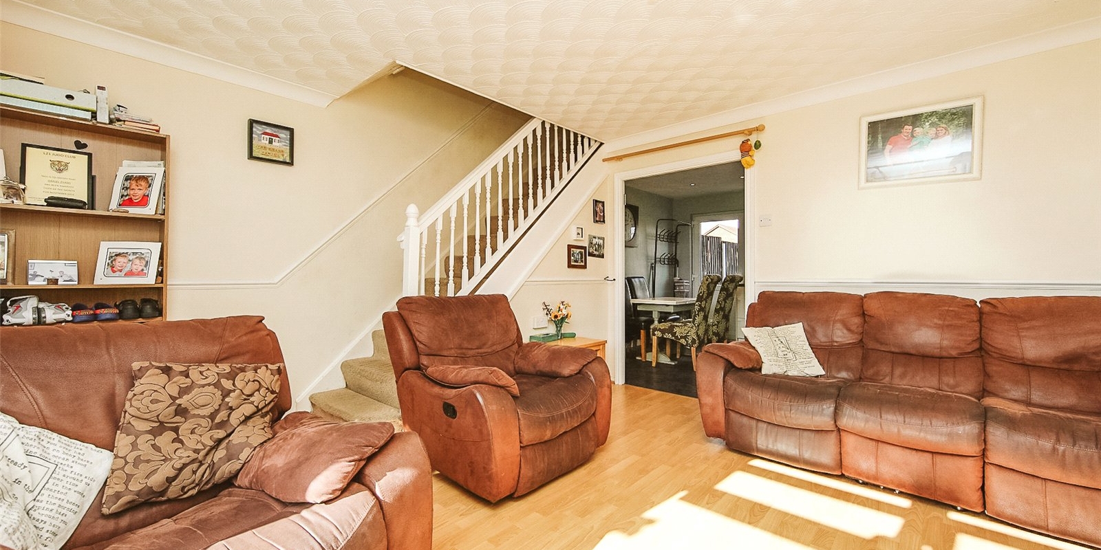 The spacious lounge at the front of the property offers a warm, welcoming atmosphere for relaxing evenings.