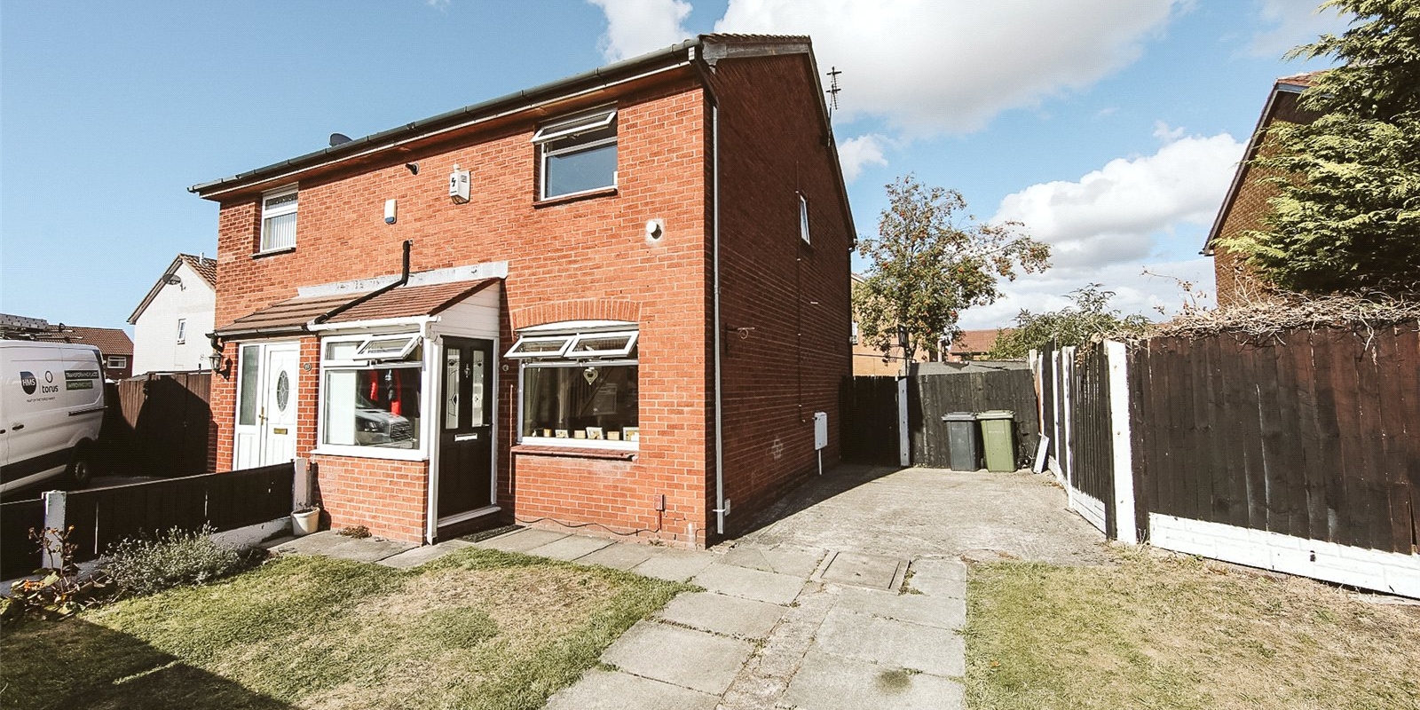 The rear garden is fully enclosed, ideal for pets or children, while the front garden adds curb appeal and privacy. A driveway to the side provides convenient off-road parking.