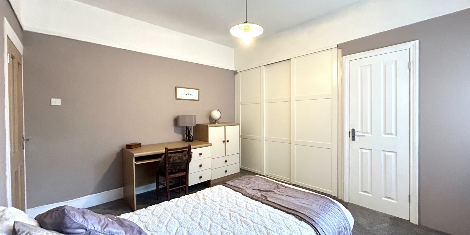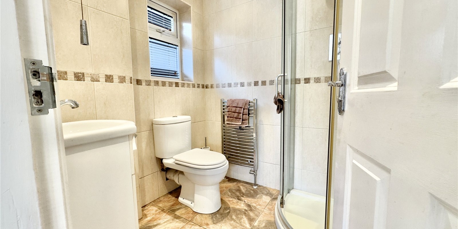 There are three double bedrooms in total. The impressive master suite forms part of the rear extension and benefits from an en-suite shower room and French doors opening directly onto the garden. One of the additional double bedrooms offers an en-suite WC, making it ideal for guests or family members.