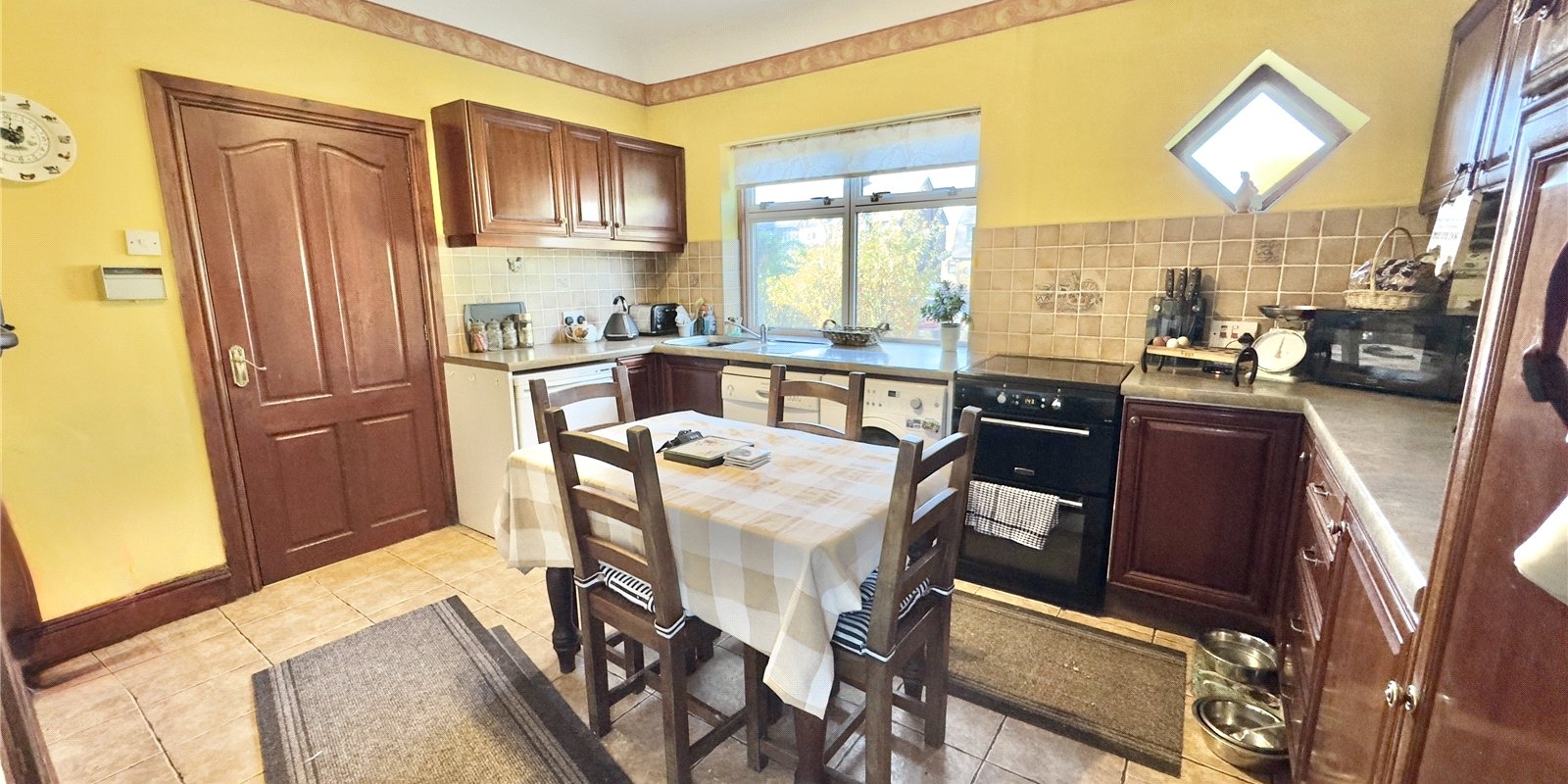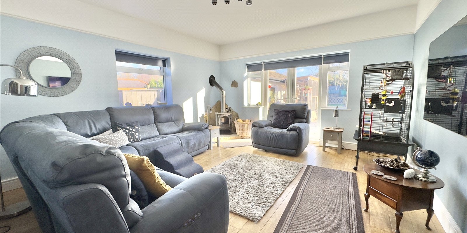 Internally, the property provides a surprisingly spacious and flexible layout. The entrance hallway leads to a bay-fronted reception room at the front which could also serve as a fourth bedroom if required. A well-proportioned kitchen/breakfast room flows into the dining room with feature fireplace and side window, while the main rear lounge enjoys garden views and a cosy wood-burning stove.