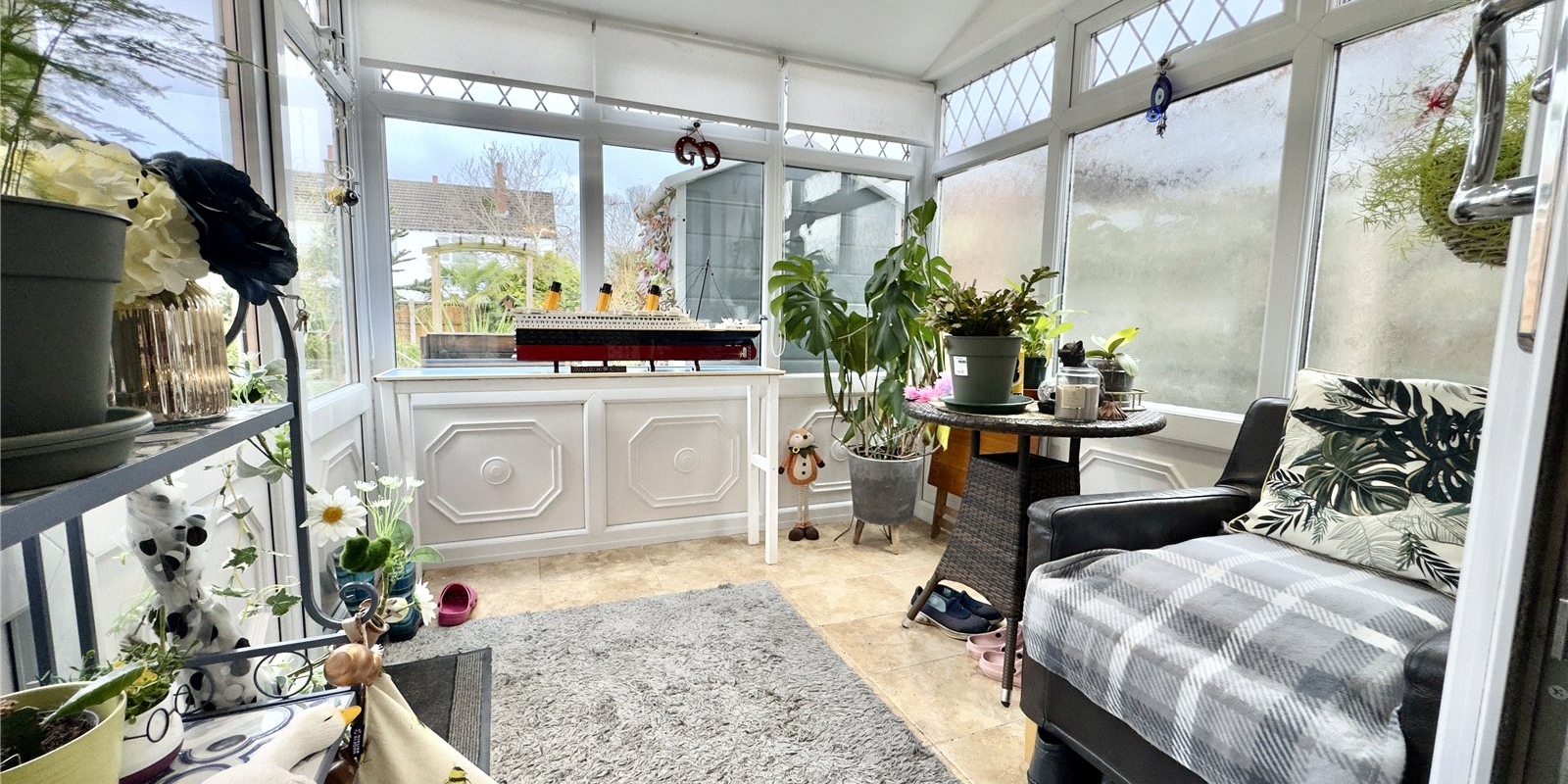 Sun Room - (2.3m x 2.4m) - UPVC double glazed windows to the sides and rear, spot lights to the ceiling, tiled floor.