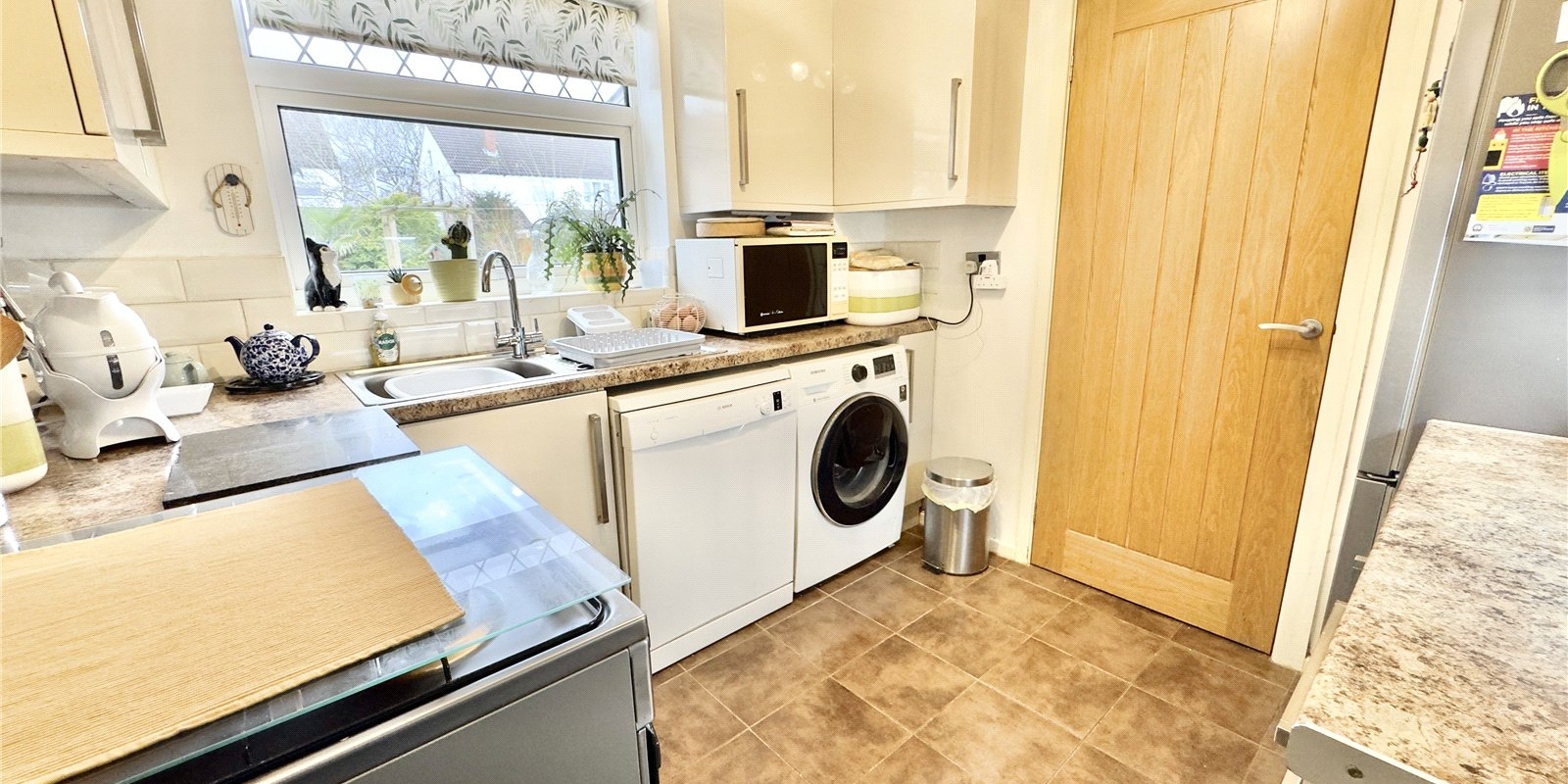 Kitchen - (2.67m x 2.57m) - UPVC double glazed window to the rear, fitted with a range of wall, drawer and base units with complementary work surfaces above, stainless steel sink unit and drainer, space and plumbing for washing machine, space and plumbing for dishwasher, understairs storage cupboard, space for under counter fridge.