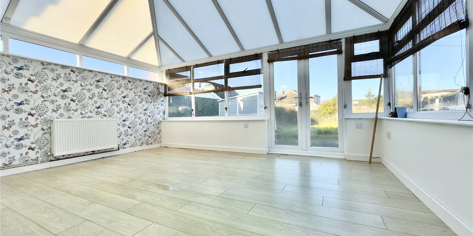 At the rear of the bungalow, the kitchen is spacious and functional, providing a great canvas for modernizing and enhancing your culinary experience. From the kitchen, you can access an extensive conservatory that overlooks the rear garden, offering a bright space that could be transformed into a lovely area for relaxation or entertaining.