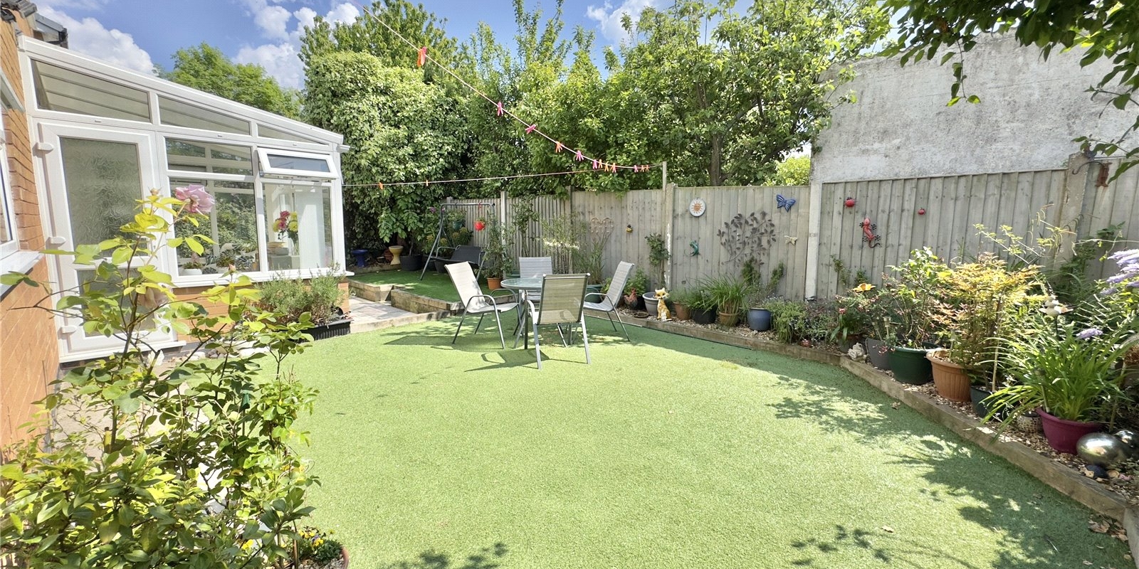 Outside, the home continues to shine. The front garden is attractively maintained and the rear garden provides a private, family-friendly space for outdoor entertaining, play, or simply relaxing in the sun. A driveway offers off-road parking and leads to the attached garage, providing additional storage or potential for conversion (subject to planning).