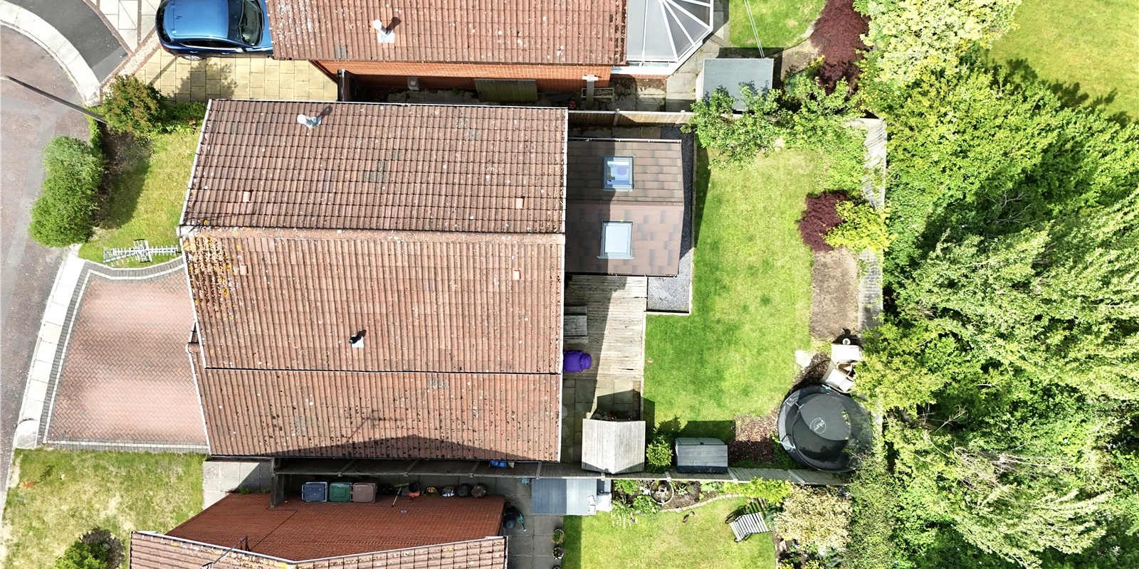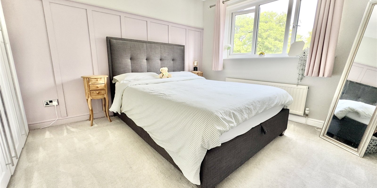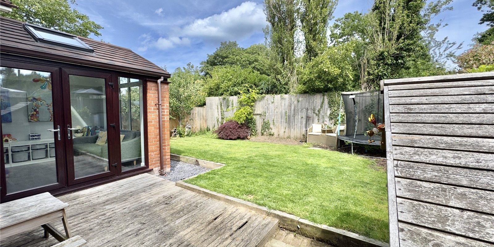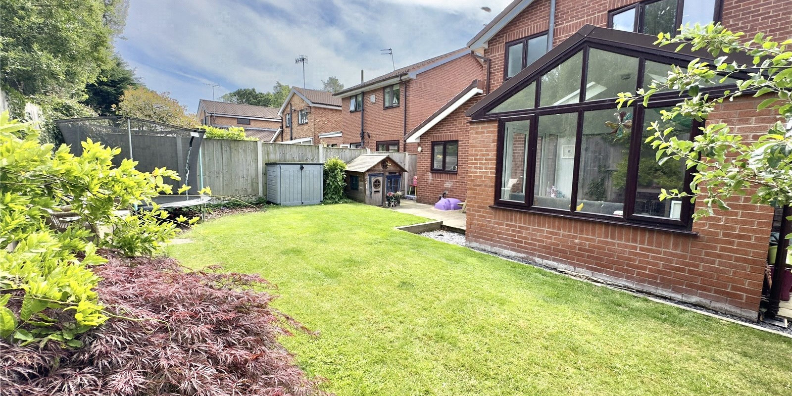 Outside, the property boasts a neatly maintained front lawn and a driveway providing off-road parking, which leads to the attached garage. The rear garden is mainly laid to lawn, with attractive planted borders, a decked seating area, and stone-paved sections – ideal for relaxing or entertaining.