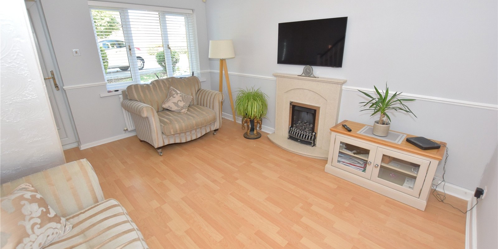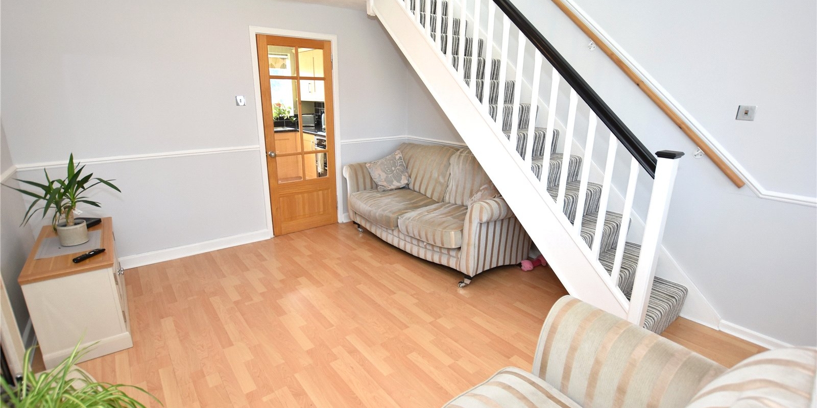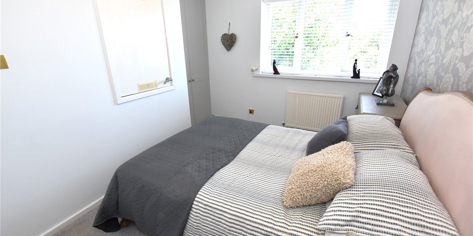 Upstairs, the main bedroom is positioned at the front of the property and benefits from a built-in wardrobe and additional overstairs storage. The second bedroom, overlooking the rear garden, is ideal as a guest room, nursery, or home office. A well-appointed family bathroom completes the accommodation.