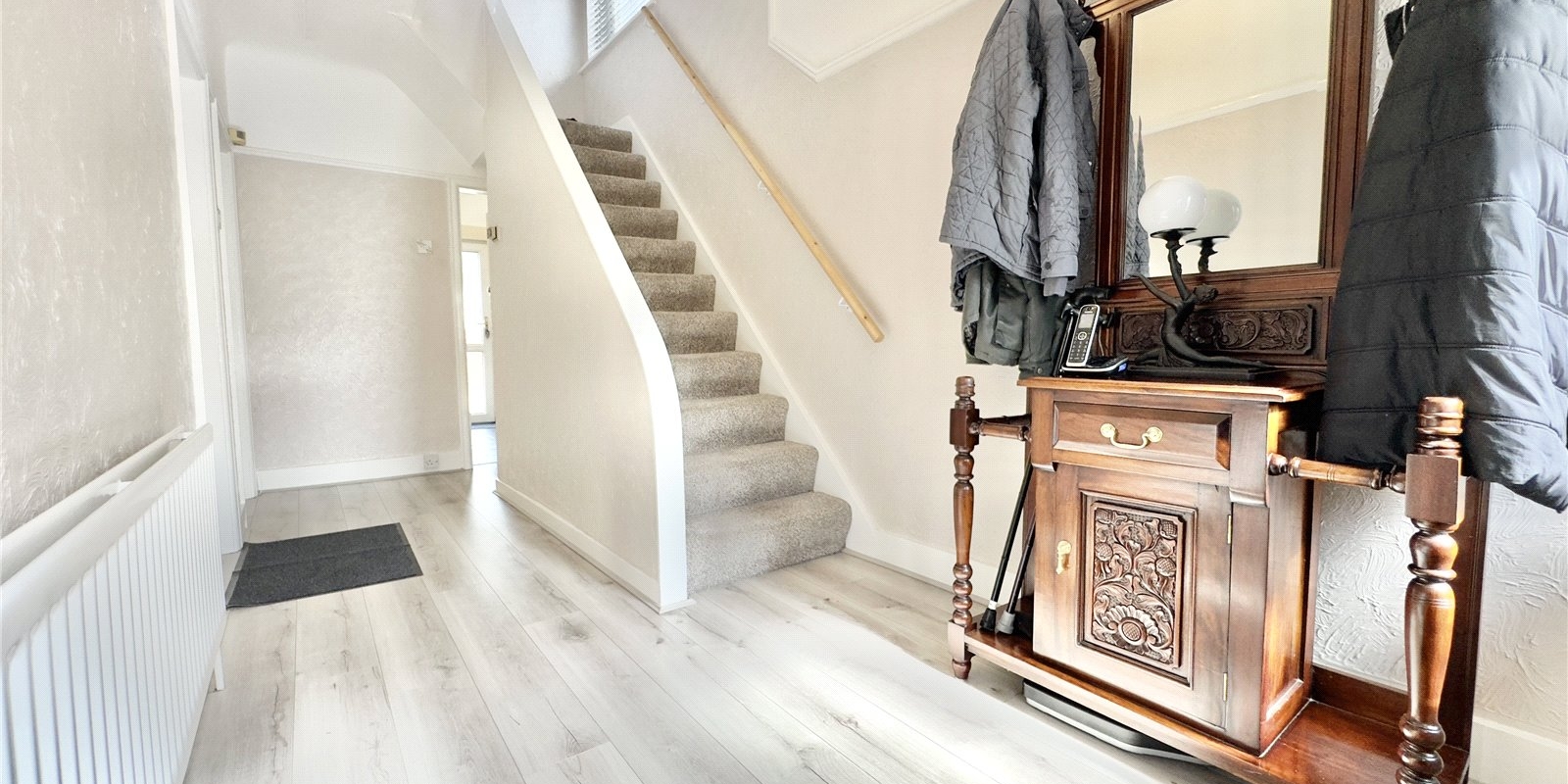 Upstairs, the first floor hosts three well-proportioned bedrooms, all offering comfortable accommodation, along with a family bathroom fitted with modern fixtures.