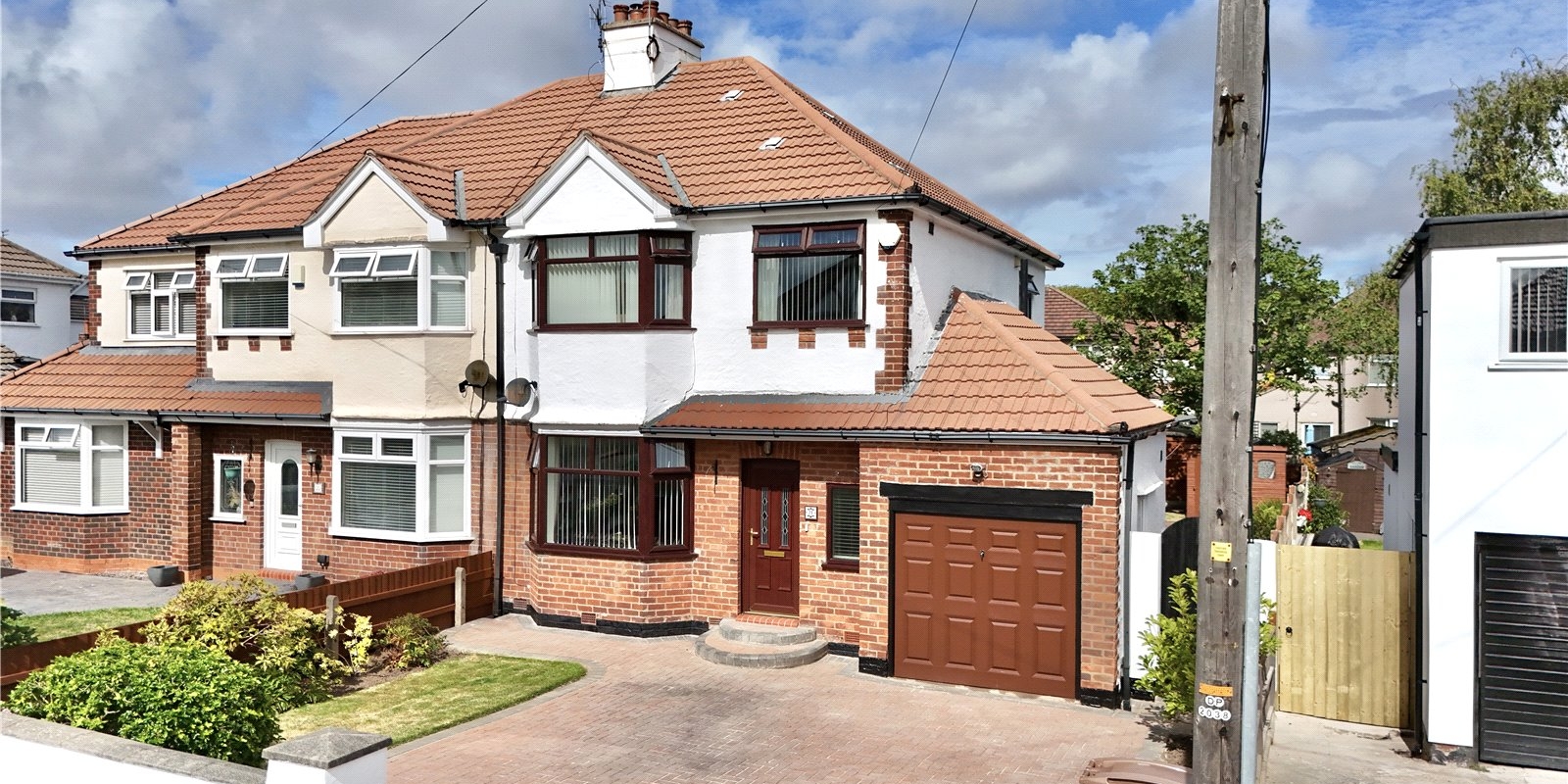 Outside, the property features a generous block-paved driveway with parking for multiple vehicles and access to the garage. The front garden includes a neat lawn with well-stocked borders, while the rear garden offers a peaceful retreat with a block-paved patio, pathway, two lawned areas, mature planting, and full wooden fencing—an ideal space for outdoor dining, play, or simply relaxing in the sunshine.