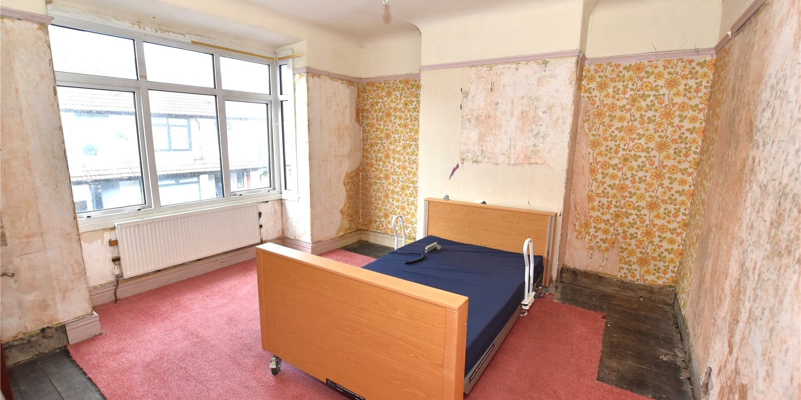 The entrance hall is generously sized and features a folding door leading to a useful understairs WC with storage. The front lounge benefits from a large bay window, filling the room with natural light, while the rear dining room enjoys direct access to the garden through patio doors. The kitchen, also at the rear, offers further garden access. Some renovation has been started here, allowing the next owner the perfect opportunity to complete it to their own style and taste.