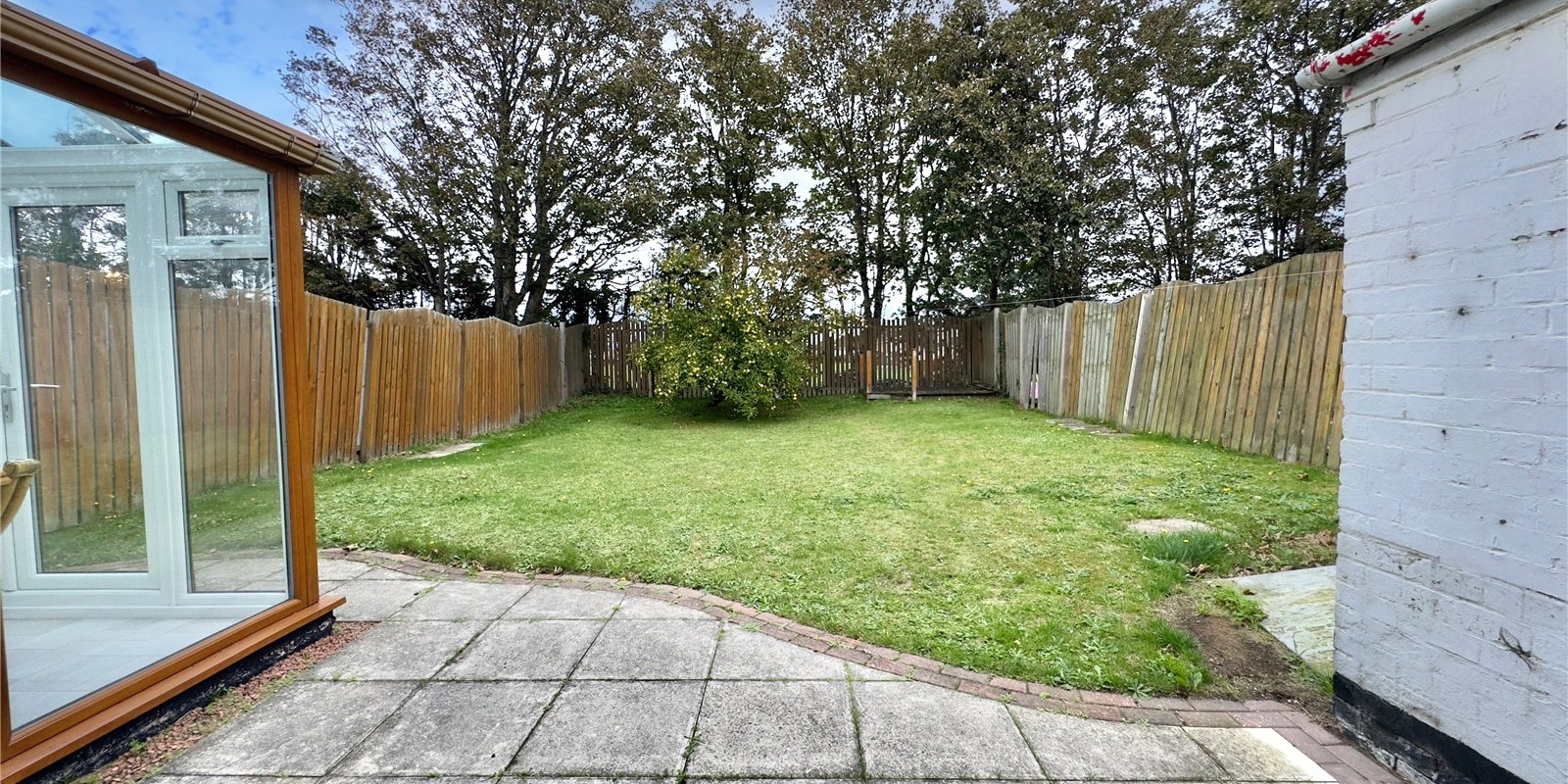 The heart of the home lies in the fully renovated kitchen and dining area, designed with timeless navy cabinetry, brushed gold fittings, white quartz worktops, and white tiled splashbacks. A breakfast bar provides casual dining space, while the open-plan layout flows into a defined dining area with patio doors through to the conservatory—an additional seating area that enjoys lovely views over the rear garden. The kitchen also features a butler sink and integrated appliances for added convenience and style.