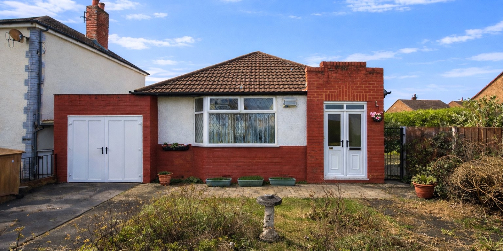 Flooded with natural light throughout, the property offers well-proportioned accommodation comprising an inviting entrance hall, a comfortable lounge with a bay window to the front, a kitchen with side access to the garage and workshop, a shower room and two double bedrooms.