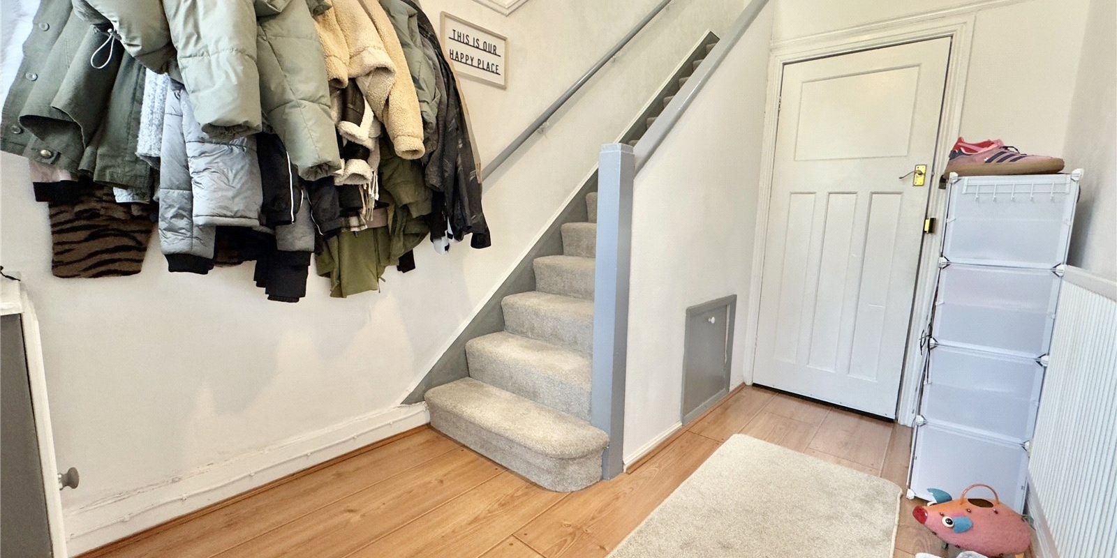 A private front entrance leads you into an initial hallway, with stairs rising to the flat’s warm and inviting main hall and landing.