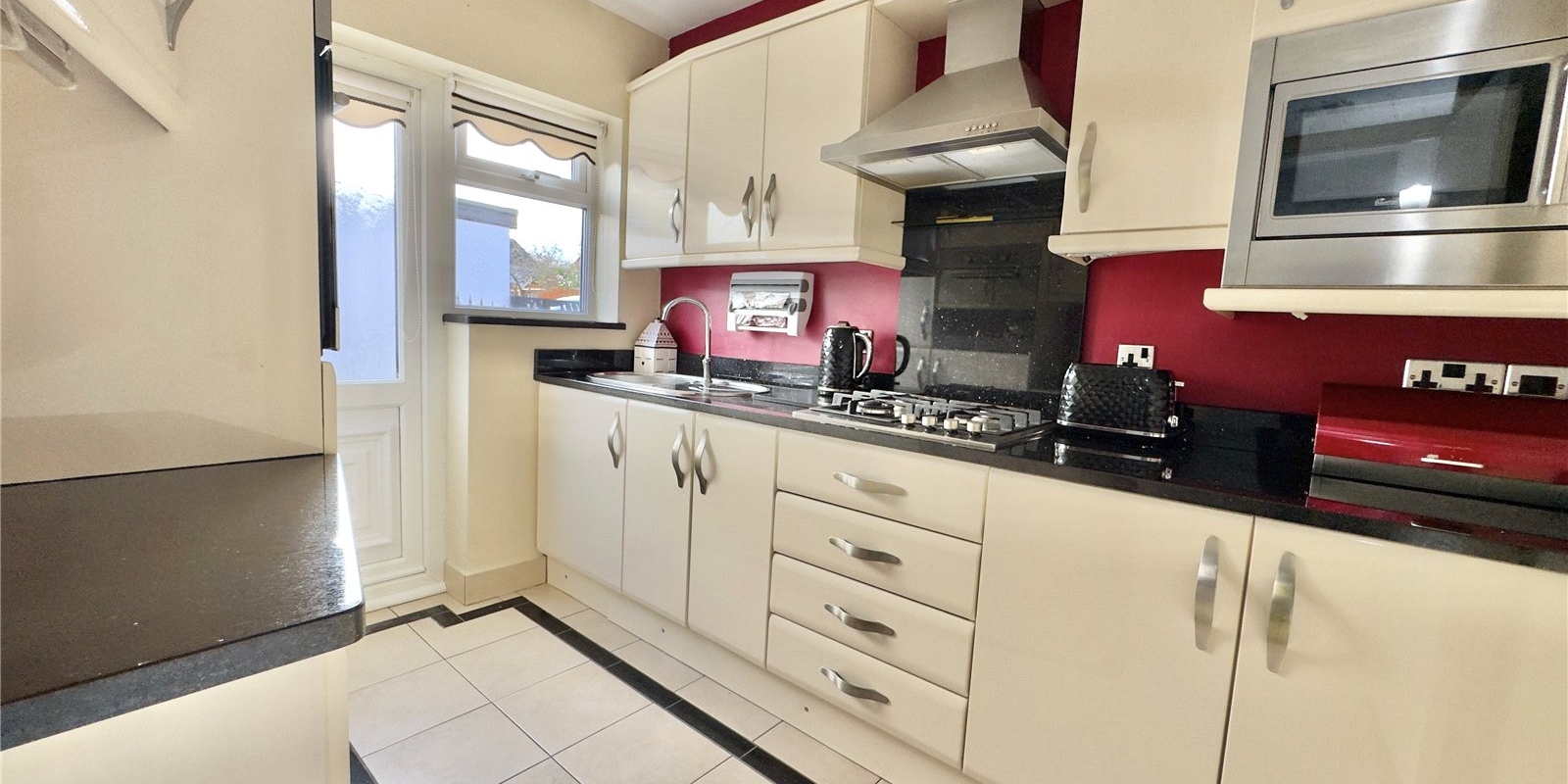 The modern and sleek kitchen is positioned to the rear of the property and is finished to a high standard, offering ample worktop and storage space and an attractive, contemporary feel. A well-appointed ground-floor shower room completes the ground level, providing the convenience of single-level living if required.
