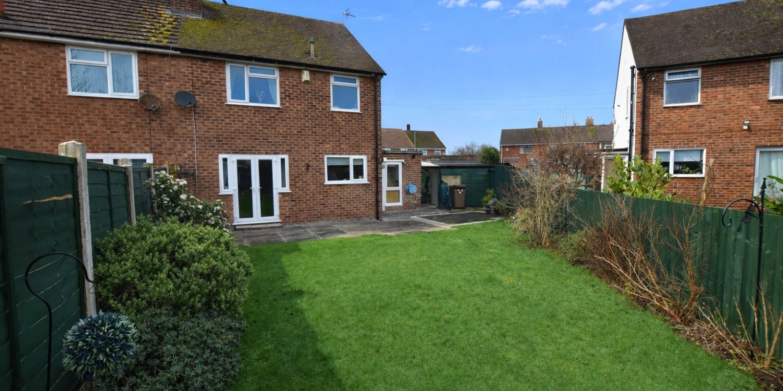 Externally, the property benefits from an extensive driveway to the front, providing off-road parking, alongside a neatly maintained lawned garden. Side access leads to the rear garden, which is of a particularly good size and enjoys a high degree of privacy. The garden is mainly laid to lawn and features a paved patio area, creating an ideal setting for outdoor dining, family gatherings or simply enjoying the warmer months.