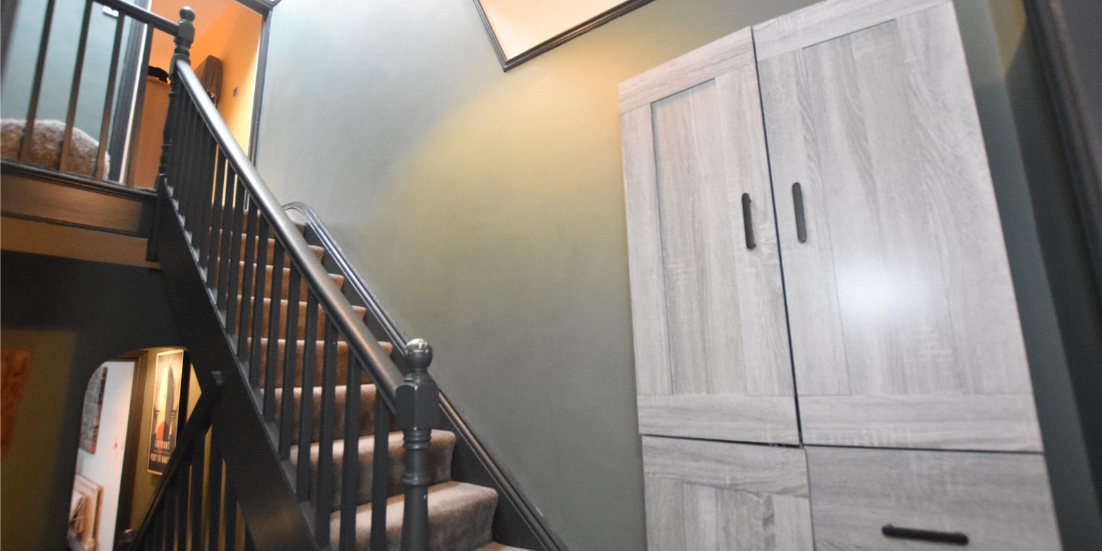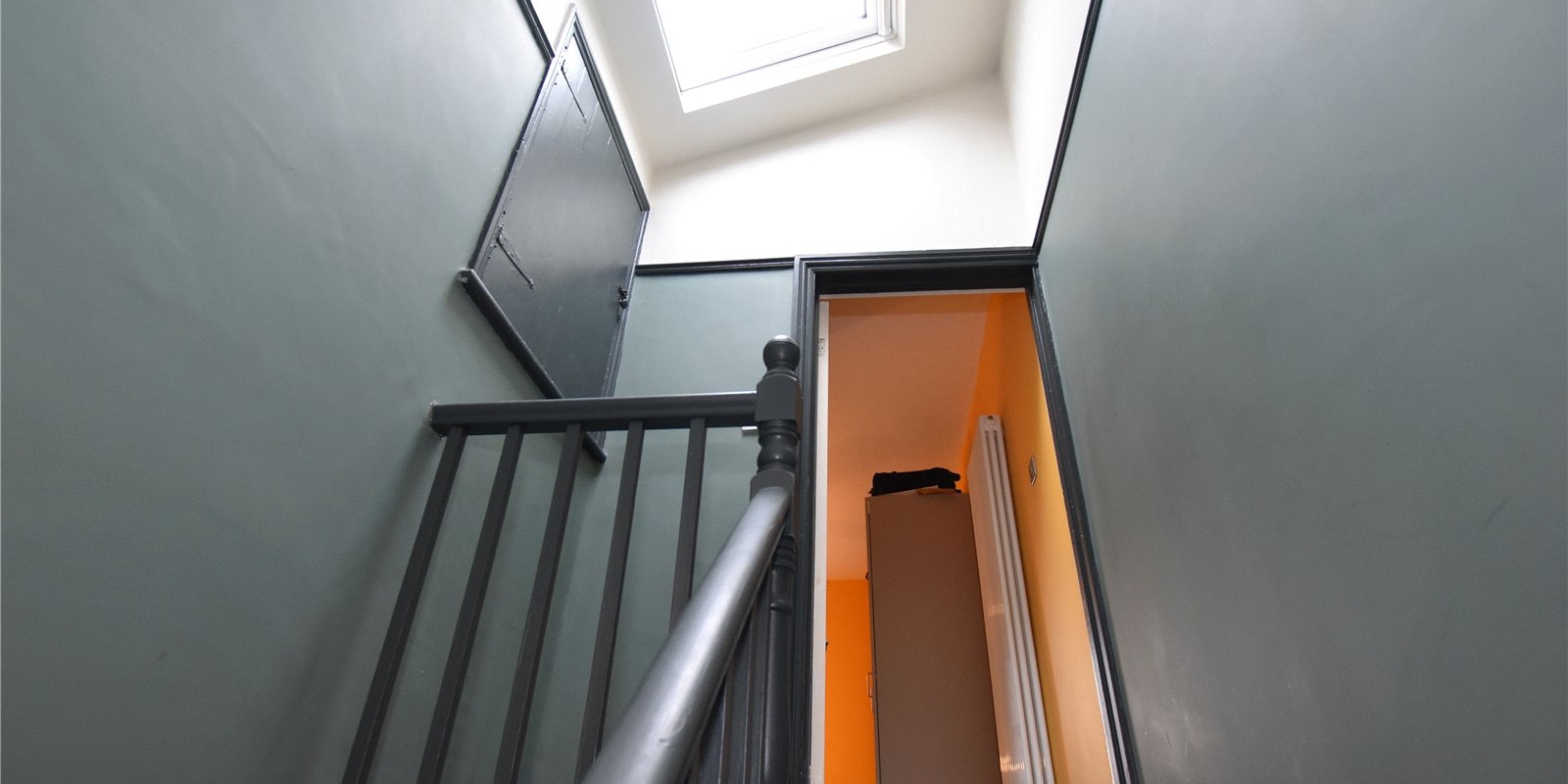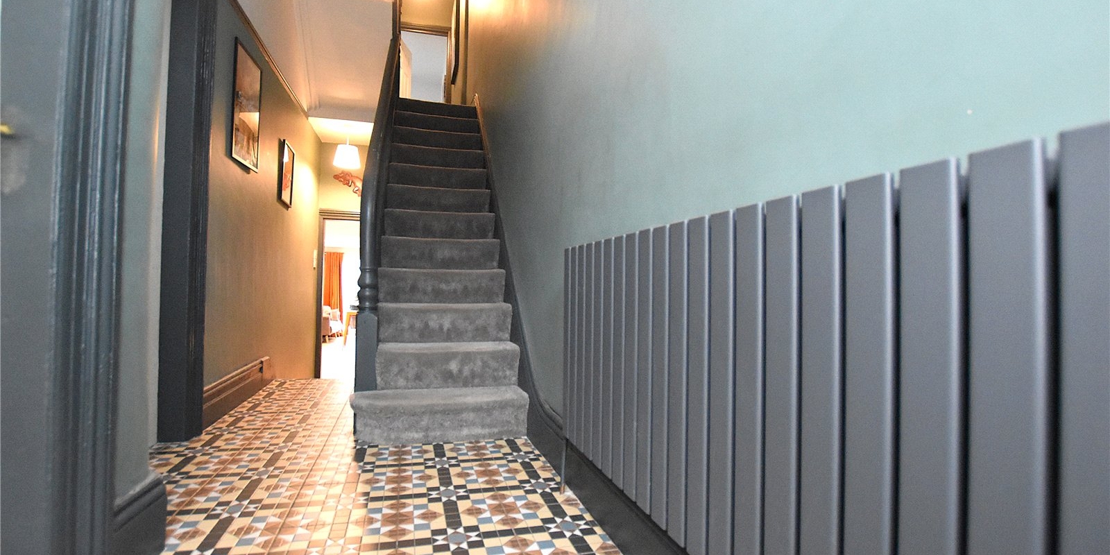 You are welcomed into the property via a useful front porch, providing excellent additional storage for coats and everyday essentials. The hallway itself makes an immediate impression with its attractive mosaic tiled floor and split-level staircase leading down into the kitchen, adding both character and architectural interest. Beneath the stairs, there is generous storage space ideal for shoes, coats and busy family life.