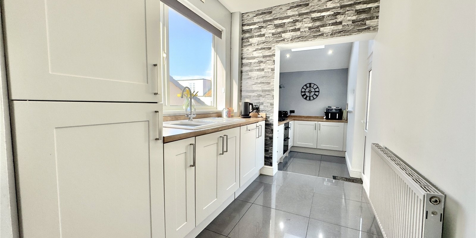 The rear reception room provides an ideal dining room or family room and is enhanced by an eye-catching chimney breast wall feature, creating a stylish focal point within the space. This contemporary design element adds character and individuality, perfectly complementing the room’s warm and welcoming feel.