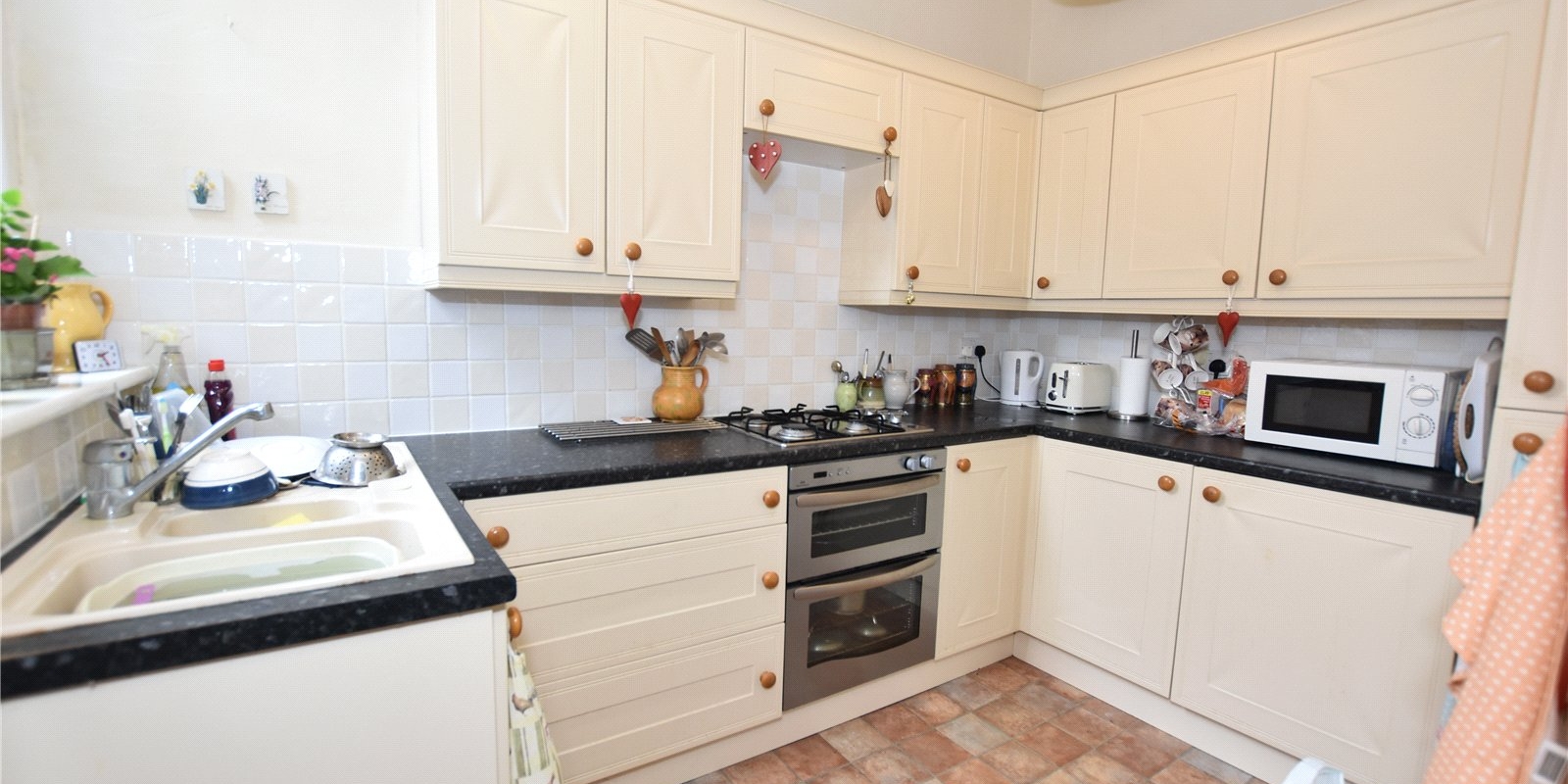 The ground floor comprises two spacious reception rooms, providing flexible living and dining space. The dining room leads through to the kitchen, which in turn opens into a useful utility area and a private courtyard garden, perfect for low-maintenance outdoor living.