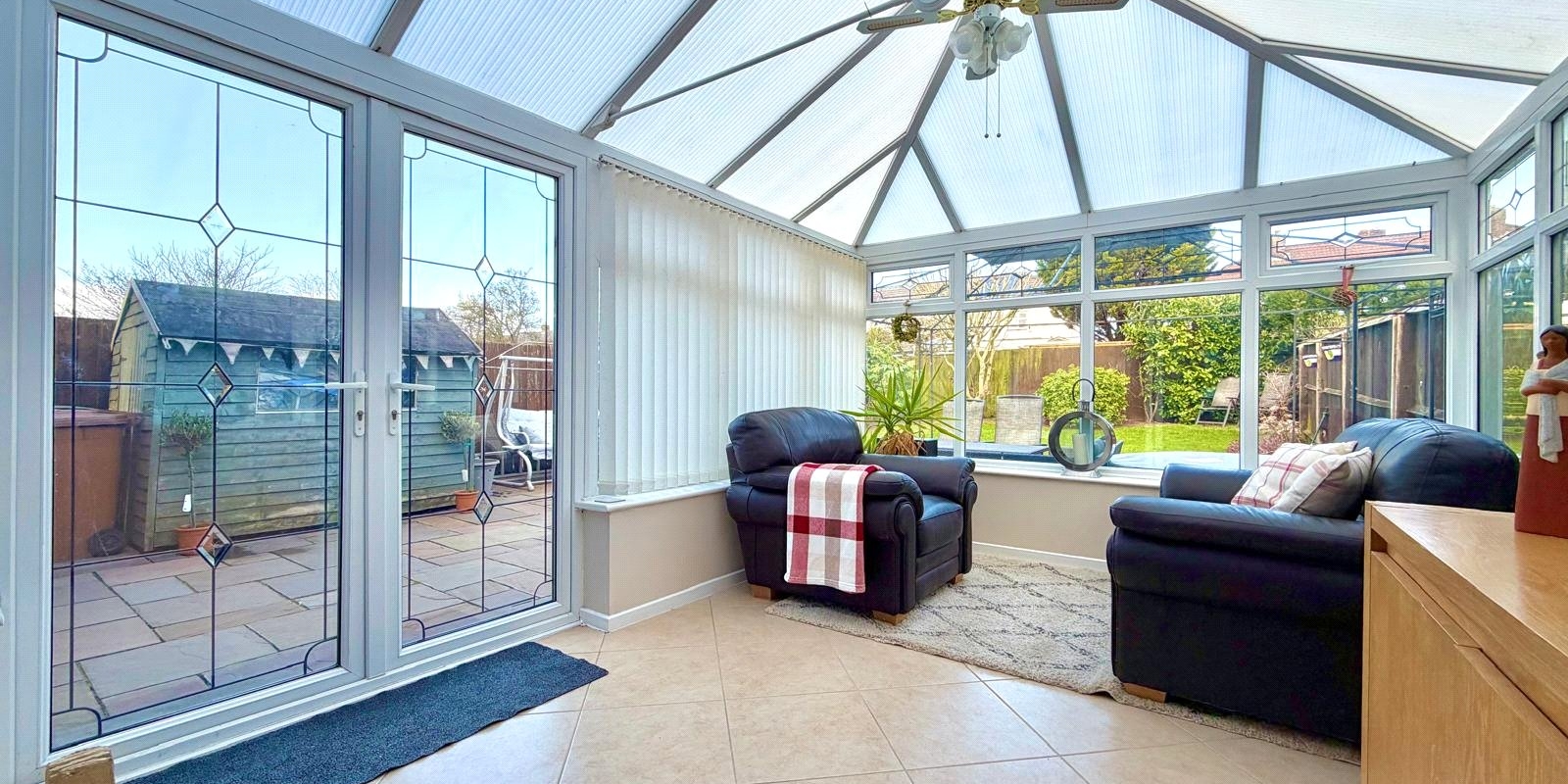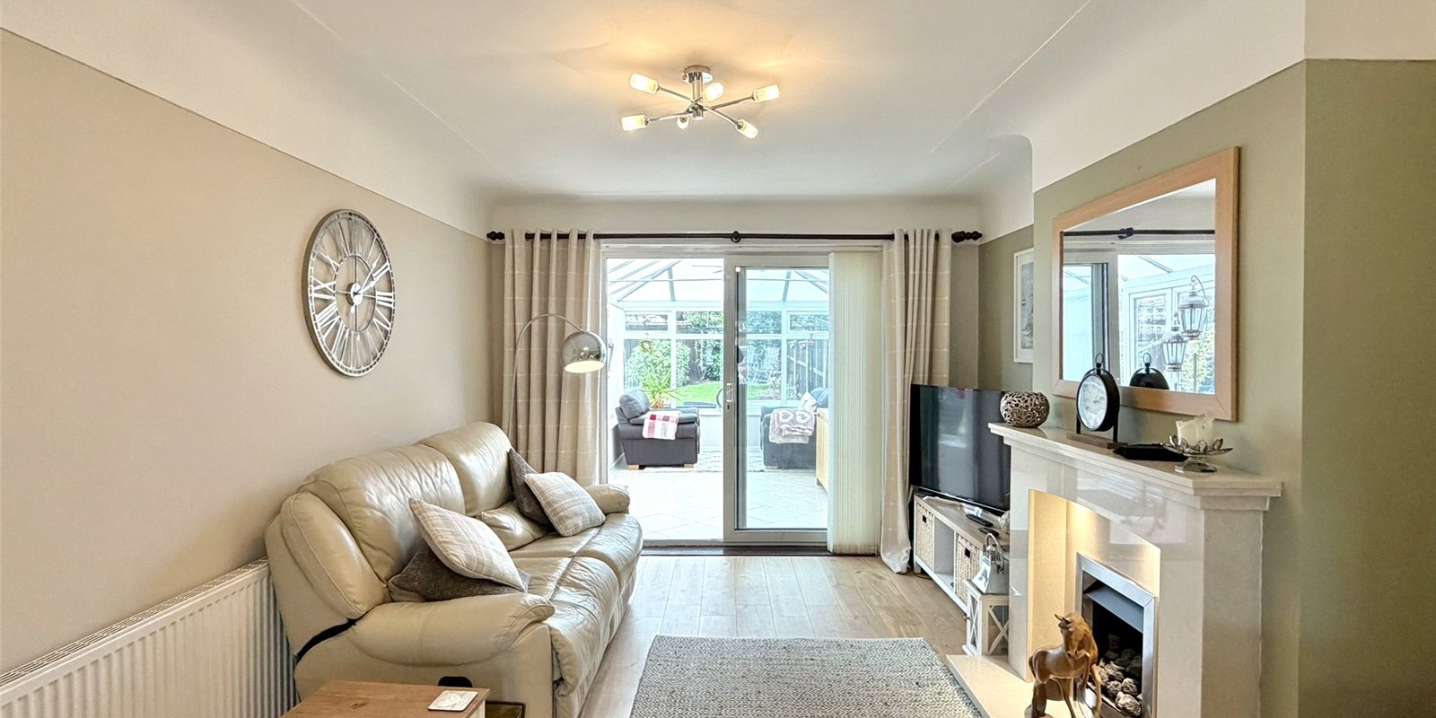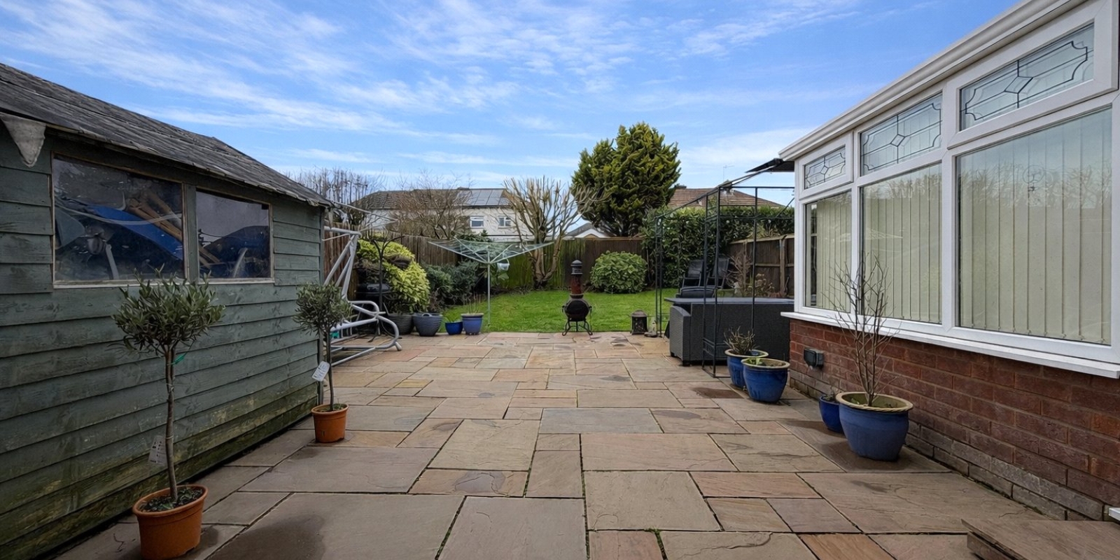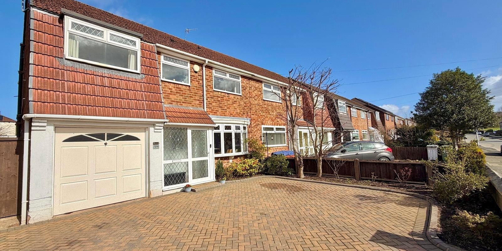 Externally, the property enjoys a private enclosed rear garden with a patio seating area and lawn, ideal for outdoor dining and family enjoyment.