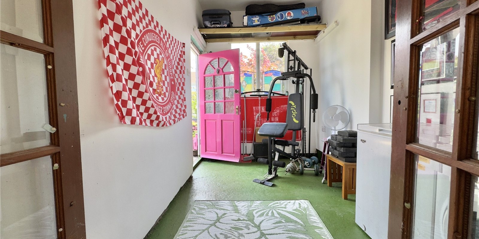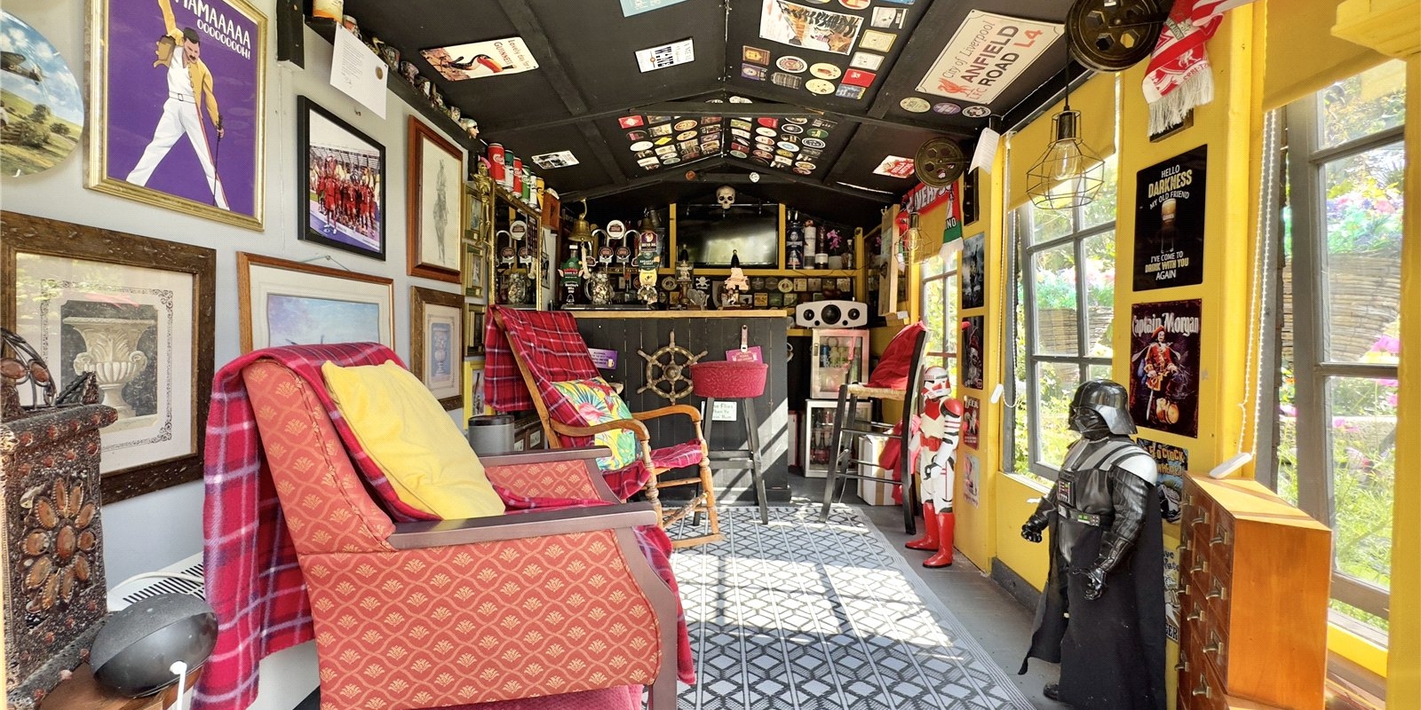 A converted shed has been transformed into your very own garden pub, making this home a true one-off! To the front, there is off-road parking, and a side patio area offers additional space to unwind or entertain.