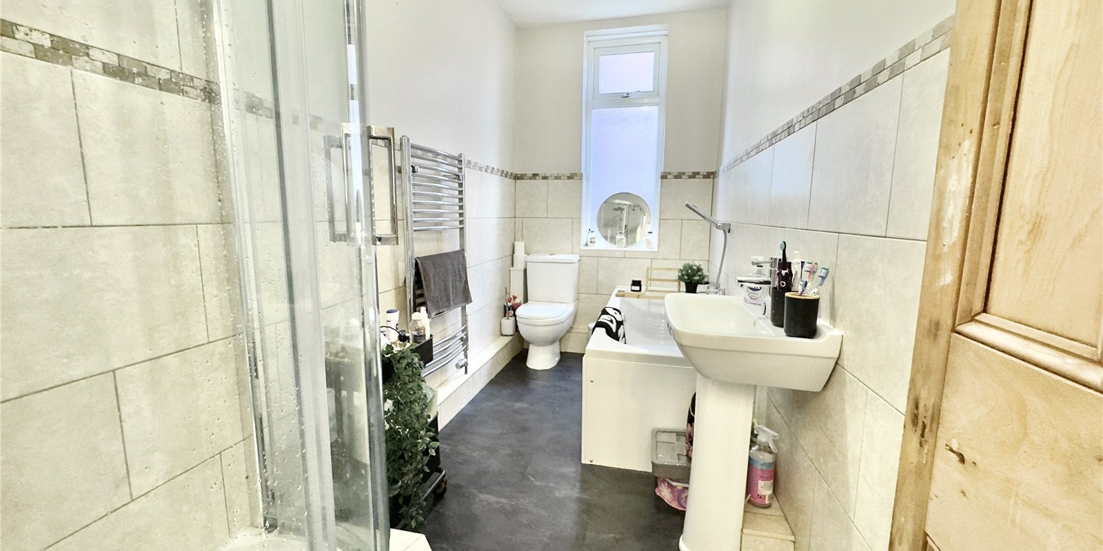 Set within an attractive period property, the apartment has been thoughtfully modernised while retaining the charm and proportions typical of homes from this era. The shared front garden adds to its welcoming feel, and the interiors have been finished with a clean, contemporary touch throughout.