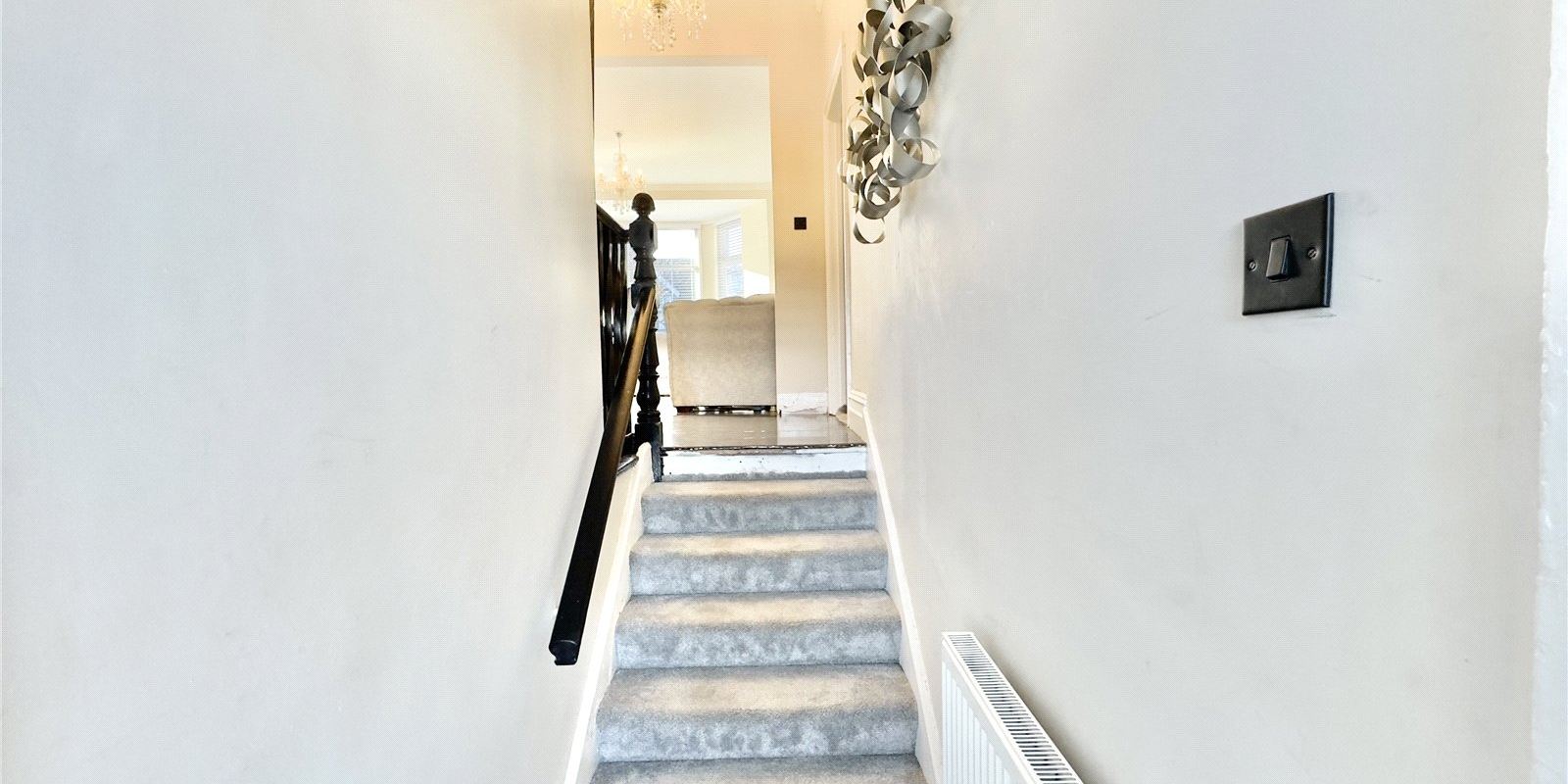 The spacious entrance hallway sets the tone for the home. On this level you’ll find the first double bedroom, complete with generous built-in storage.