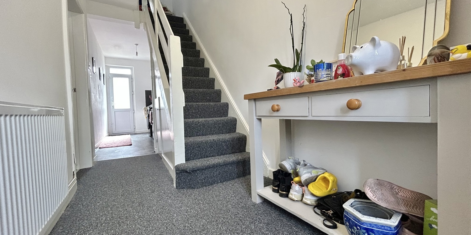 Outside, the property benefits from an enclosed rear yard with double wooden gates, offering the flexibility of off-road parking if required. Additional benefits include residents’ parking permits plus visitor parking, double glazing, and gas central heating.
