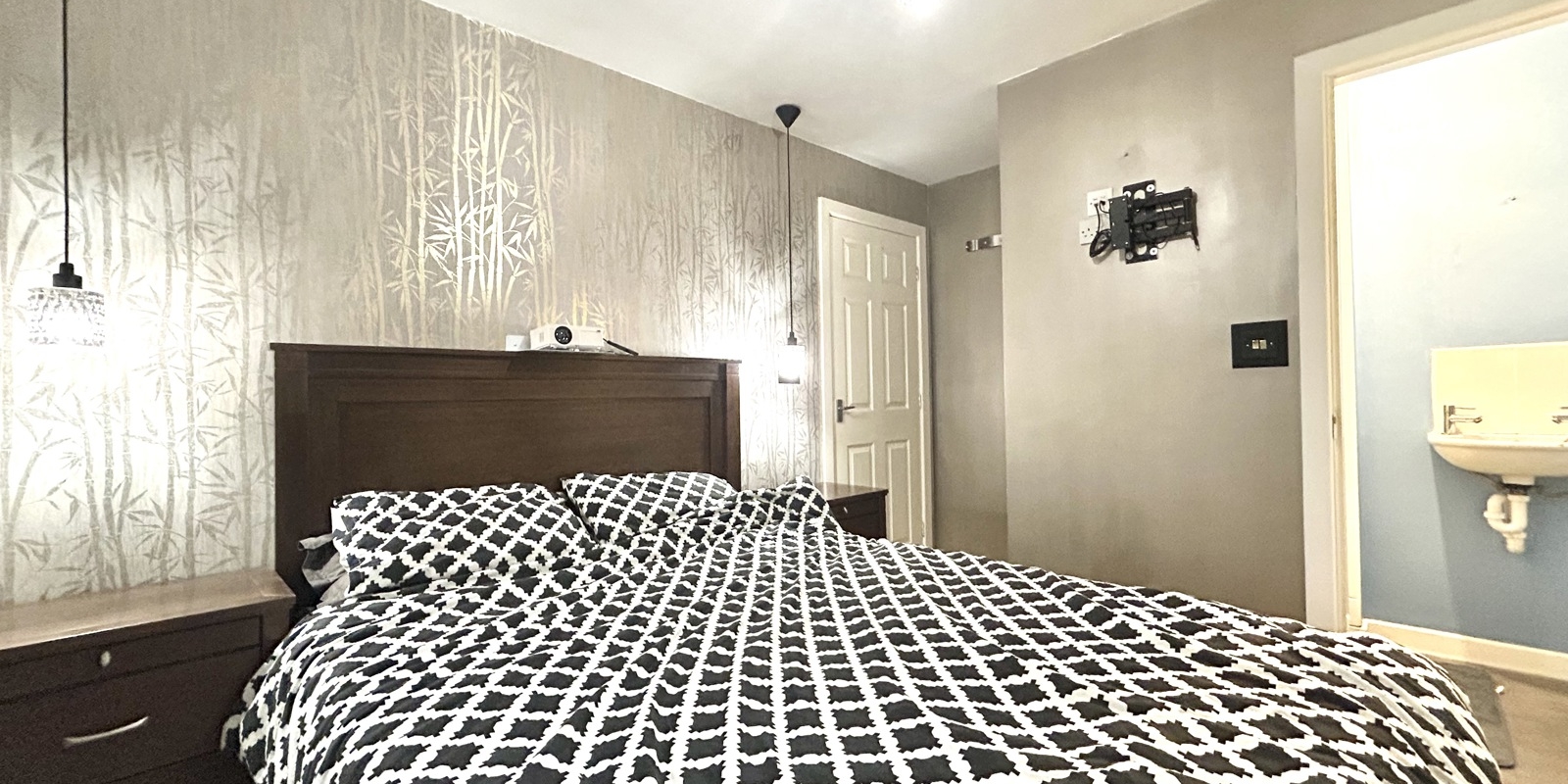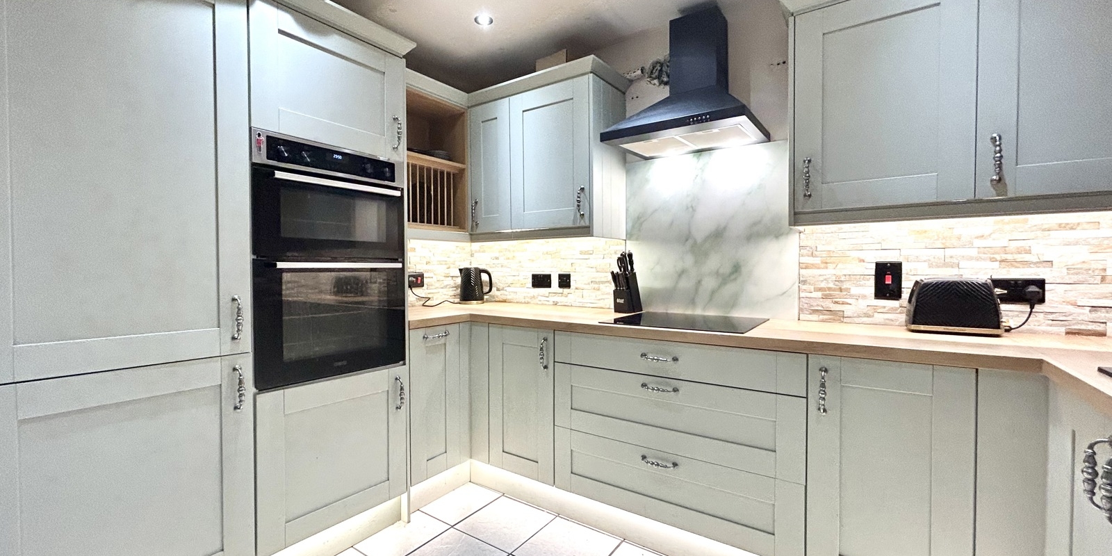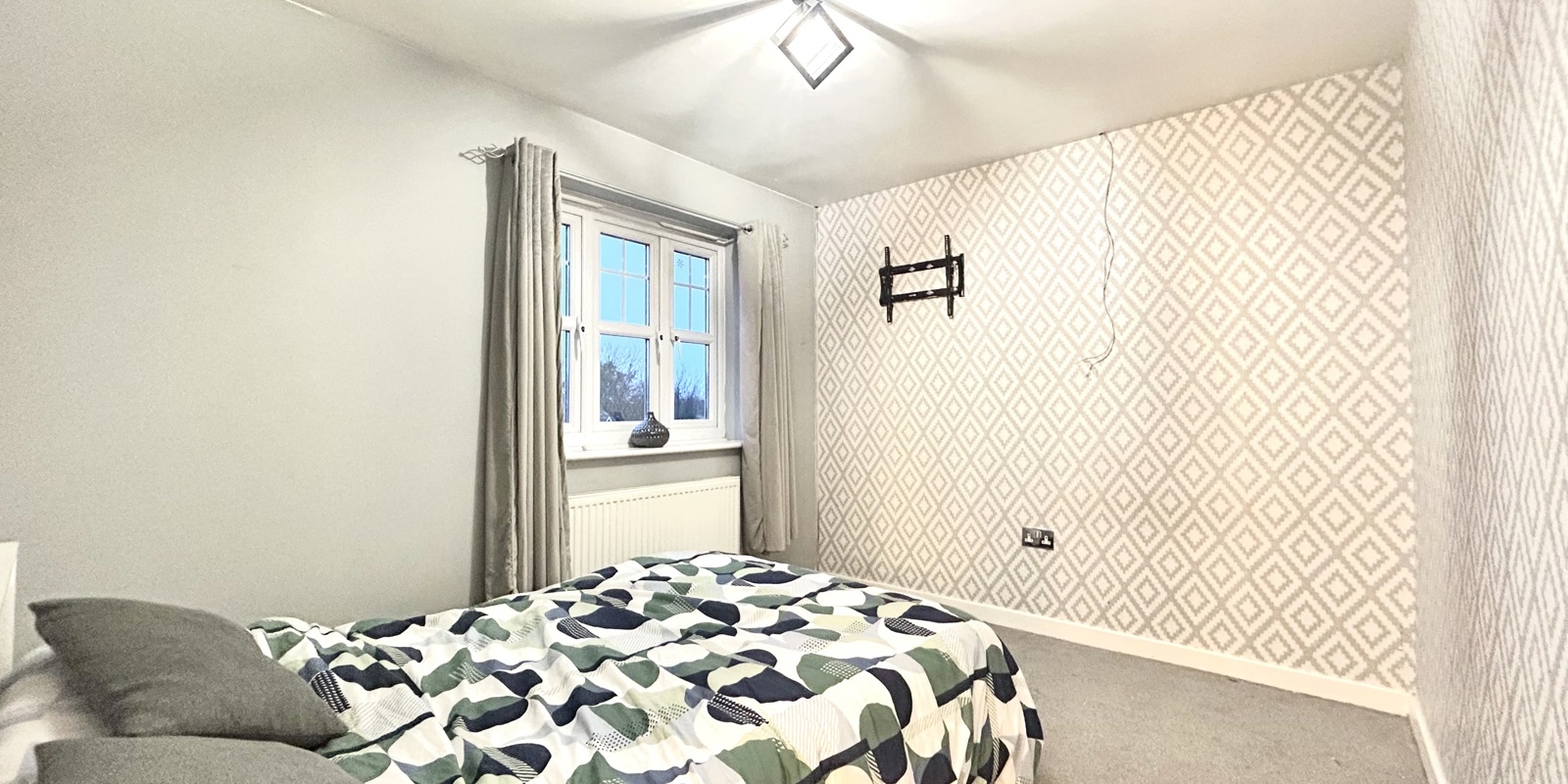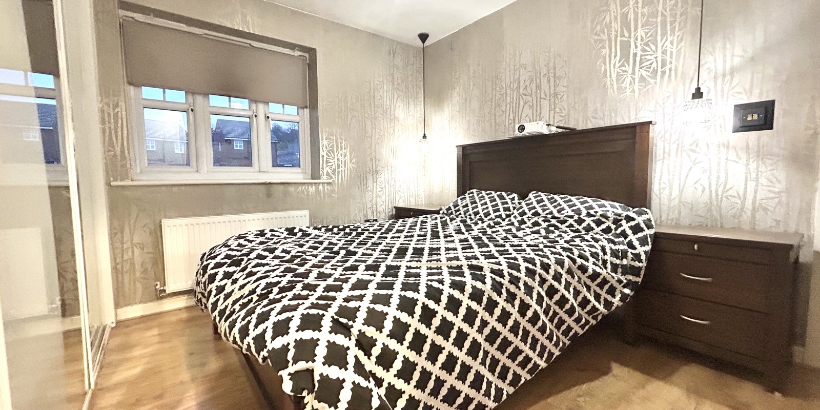 The staircase to the first floor is enhanced with feature acoustic wood panelling and integrated lighting, adding a contemporary design touch. The master bedroom benefits from an en-suite shower room, while bedrooms two and three are both well-proportioned doubles. The accommodation is completed by a modern three-piece family bathroom.