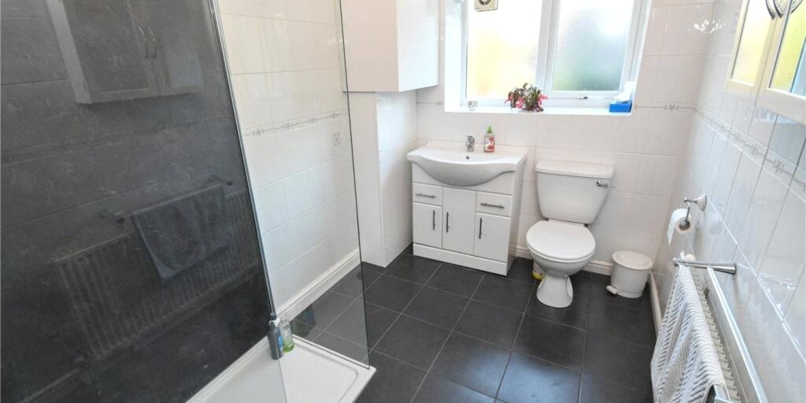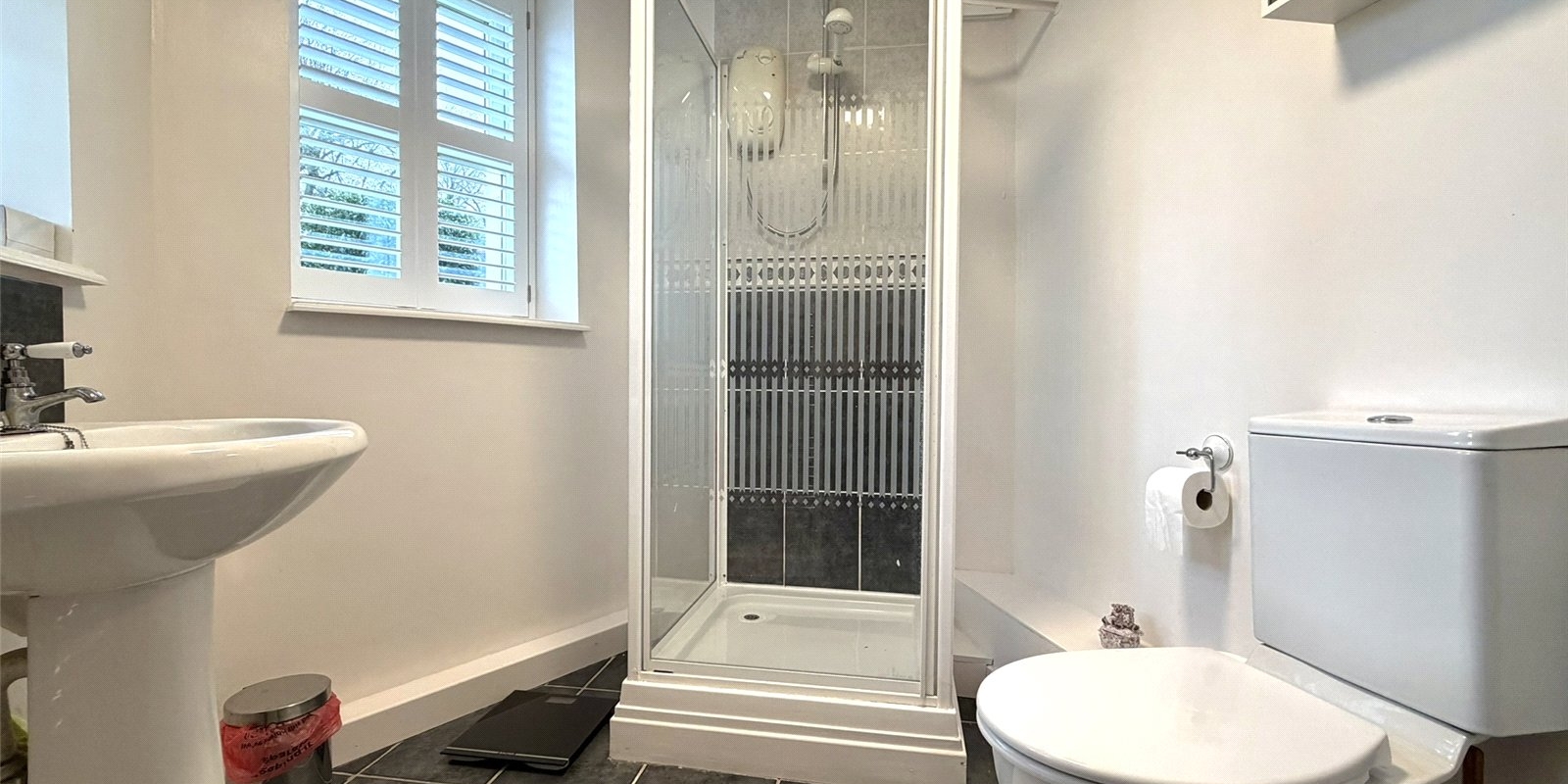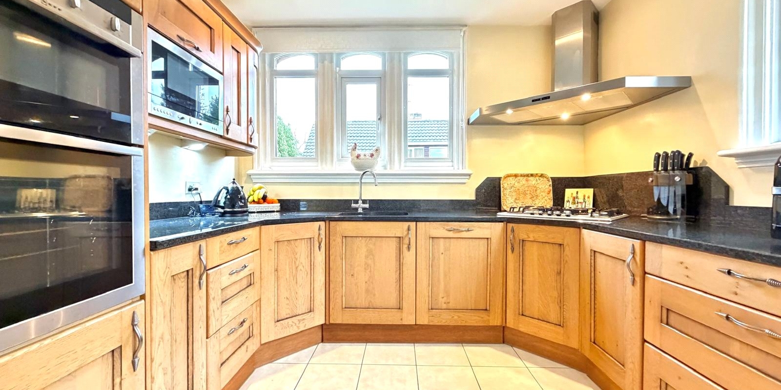 Also on the main level is a fitted kitchen alongside a convenient shower room and WC. The lower ground floor reveals three well-proportioned double bedrooms, two benefiting from en-suite facilities, in addition to a stylish family bathroom.