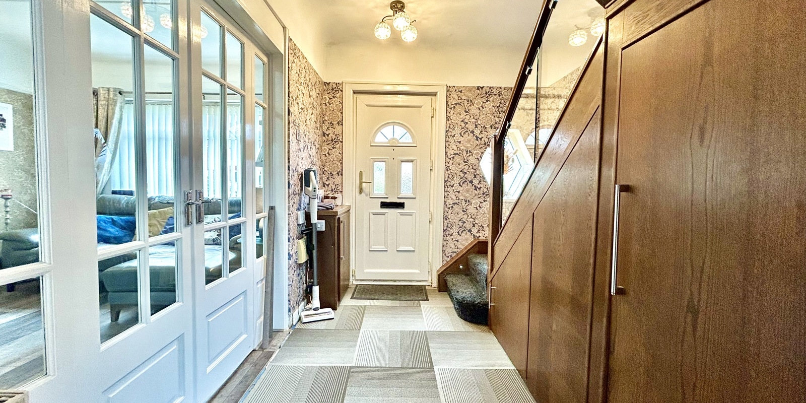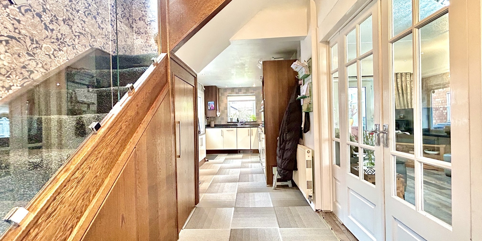 The entrance hallway has been thoughtfully opened up to improve the natural flow of the ground floor, creating a real sense of space and connectivity with the kitchen.