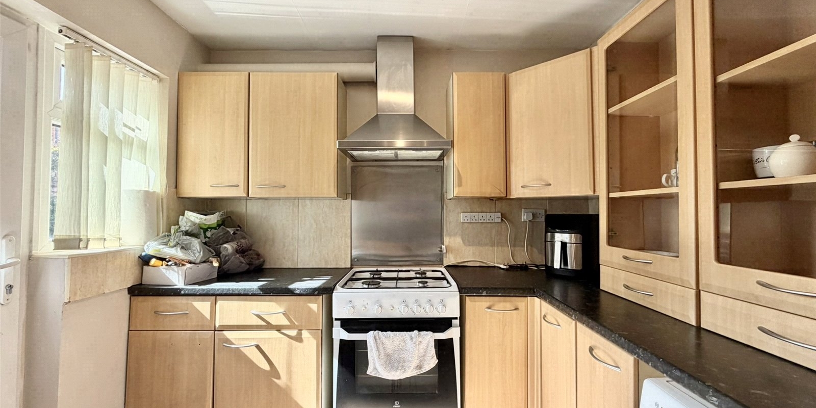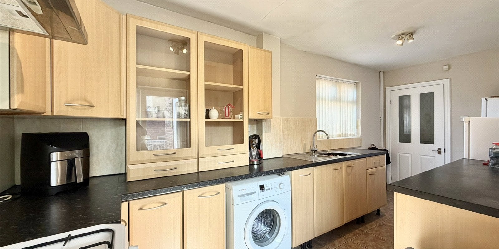 To the rear, a galley kitchen provides functional space with scope for modernisation or extension (subject to relevant permissions).